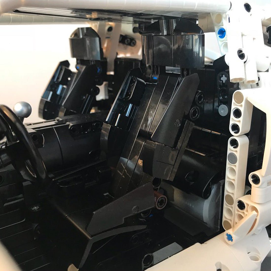 - Das Auto verfügt außerdem über vordere und hintere Scheinwerfer, motorisierte Motorhaube und Kofferraum, 2 XL-Motoren für den Antrieb, 1 Servomotor für die Lenkung, 1 oder 2 Batterien (oder 1 oder 2 Lipo-Batterien und 1 oder 2 Sbricks mit 1 oder 2 zusätzlichen Verlängerungskabeln *) * Wenn Sie mit 2 Steinen bauen, müssen Sie diese im Heckfenster platzieren, da sie nicht in den Kofferraum passen