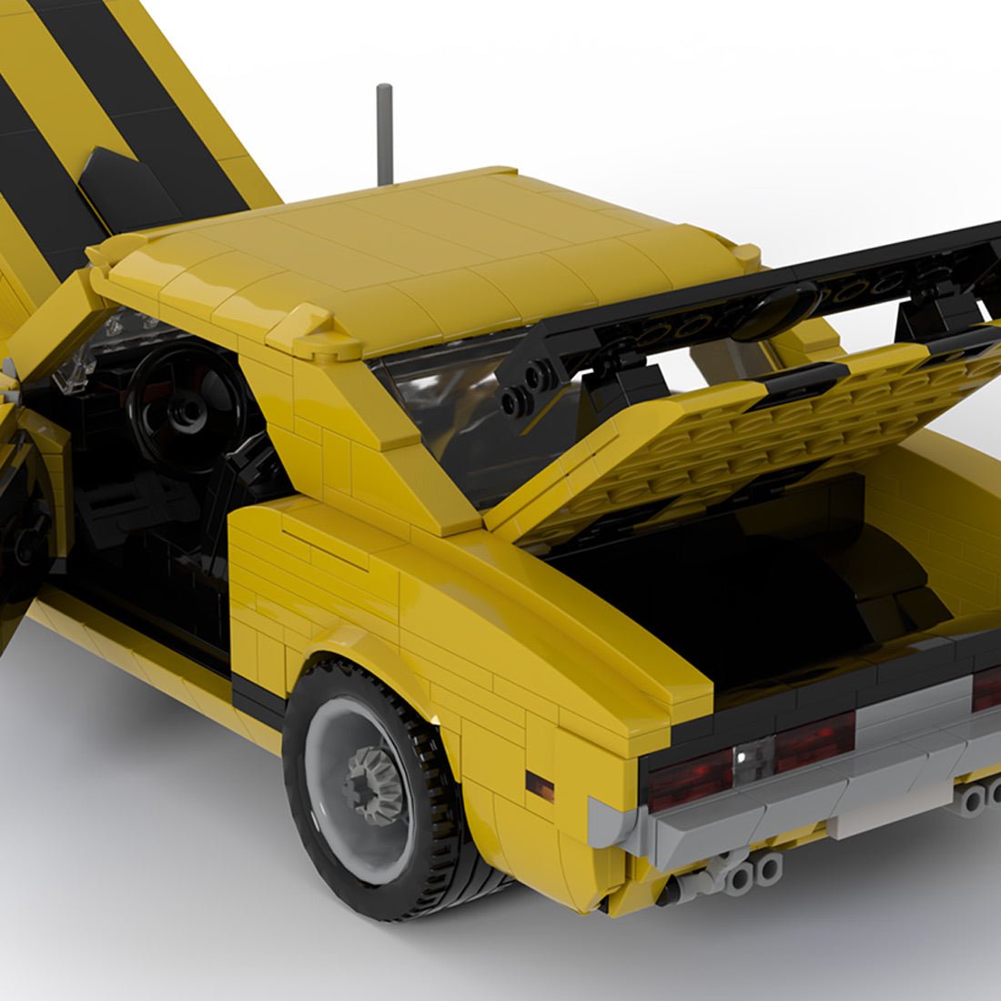 Dieses von Double_U_Bricks entworfene und autorisierte Modell ist vom kultigen amerikanischen Muscle-Car aus einem berühmten Spiel inspiriert. Der Sportwagen bildet den klassischen Heckspoiler des Spiels originalgetreu nach und verfügt über eine auffällige gelbe Karosserie mit schwarzen Rennstreifen, die ihn auf jeder Autoliste hervorstechen lassen.