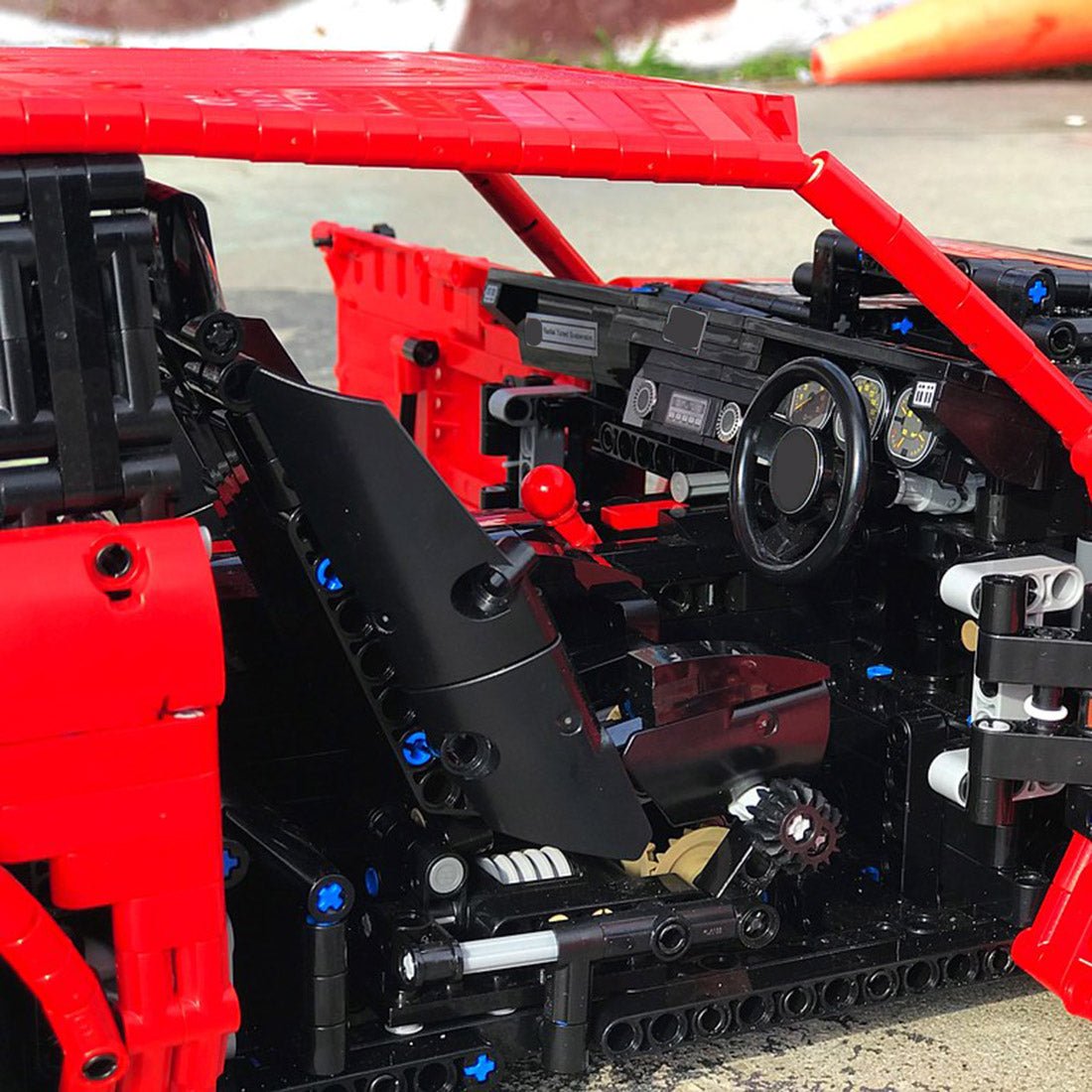 Dieses Auto ist originalgetreu mit Hinterradaufhängung mit angetriebener Achse, Türen und Motorhaube zum Öffnen, RC-Kofferraumöffnung hinten, V8 mit funktionierendem Lüfter, verstellbaren und neigbaren Sitzen, funktionierendem Lenkrad, 1 oder 2 Buwizz, 2 XL- oder 2 L-Motoren. Servo für Lenkung oder manuell.