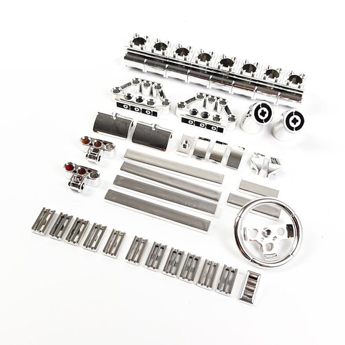 Dieses 918-Sportwagenmodell verfügt über ein sequentielles 7-Gang-Getriebe, Schaltwippen, einen horizontalen Controller, drei Differentiale, einen V8-Motor und eine zu öffnende Motorhaube. Die Lenkung ist mit dem Lenkrad verbunden, die Sitze sind verstellbar und es ist ein funktionsfähiger Spoiler enthalten. Das galvanisierte Lenkrad und die Auspuffrohre verleihen dem Auto einen hochwertigen Touch und bilden die Details des echten Autos präzise nach.