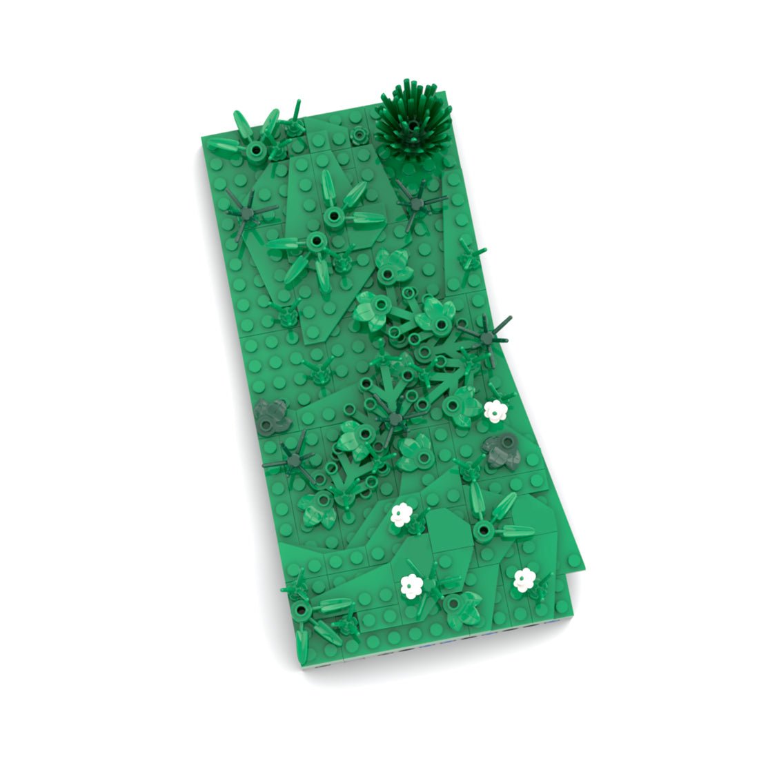 Die Wiese oberhalb des Verbindungsgangs ist mit ihren wenigen Elementen eines der kleinsten Module, da das Gelände hier an der Rückseite auch einen seiner niedrigsten Punkte aufweist. Einige Platten und etwas Grünzeug sind auf einem stabilen Rahmen platziert, um das Gelände zu erweitern und einen Übergang zu den anderen Modulen zu schaffen.