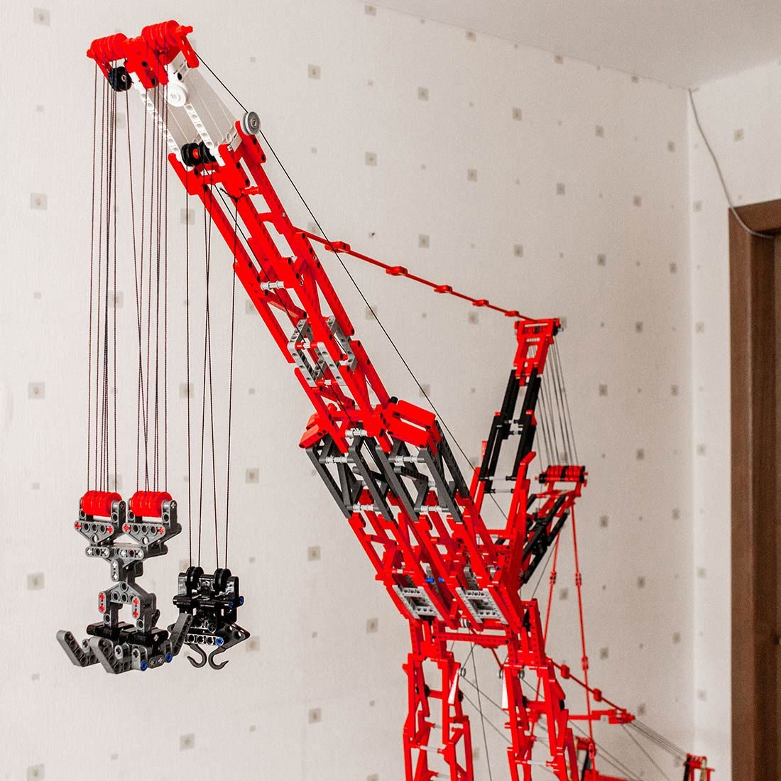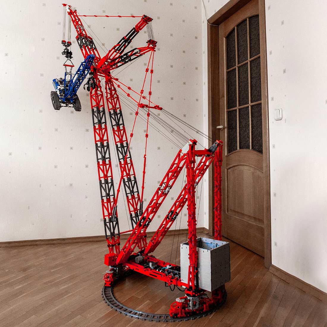 Funktion: Der Kran kann Dinge bis zu einem Gewicht von 1,5 kg drehen und heben. Der Kran kann eine Höhe von maximal 2,1 Meter erreichen.