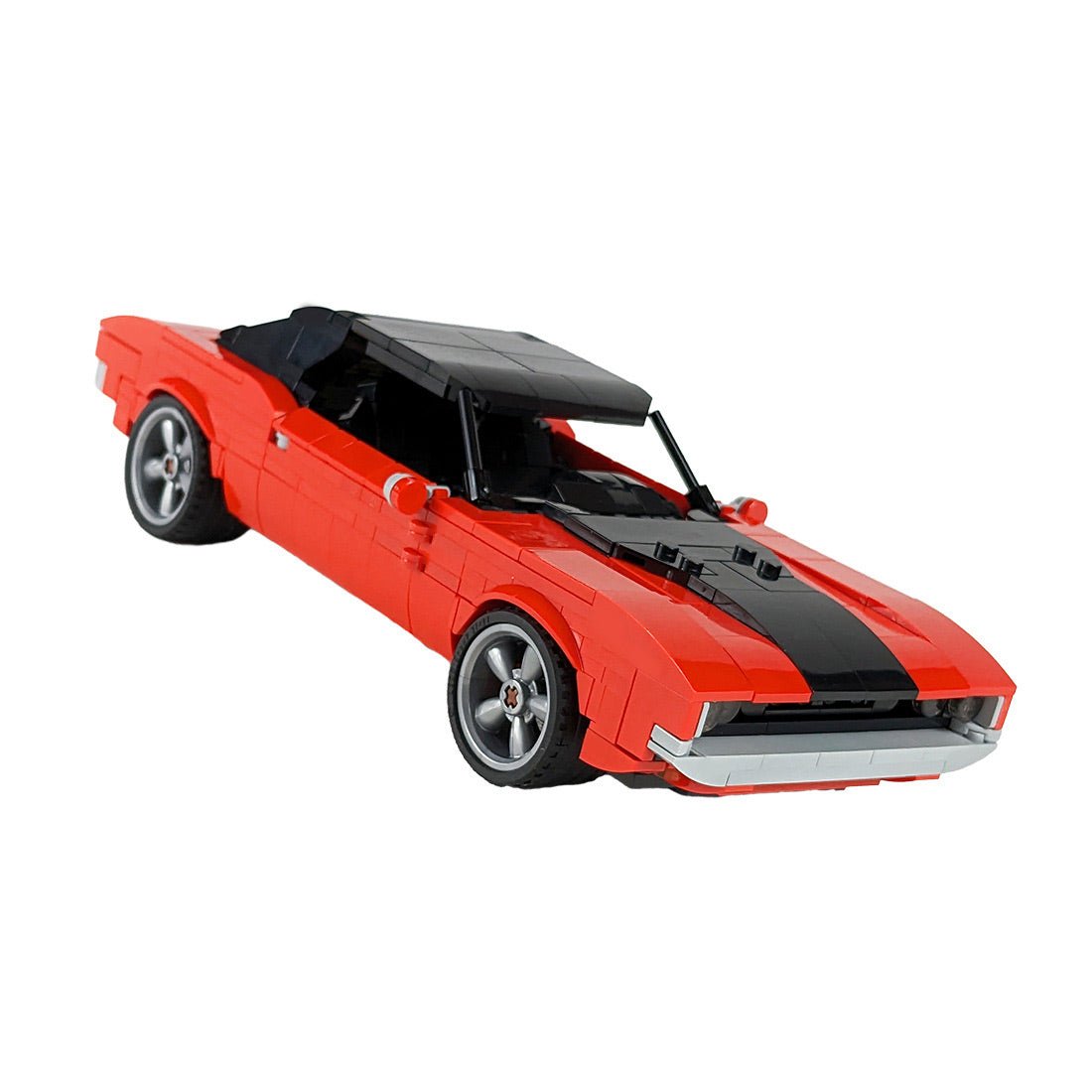Das von Gnat.bricks entworfene und autorisierte gesamte Modell verwendet Rot als Hauptfarbe und Schwarz als Ergänzung, um jedes Detail des berühmten Muscle-Sportwagens in der Realität nachzubilden. Außerdem wird jede Muskellinie in der Karosserie wiederhergestellt, wodurch das gesamte Auto sehr sportlich und sehr gut zum Sammeln und Platzieren geeignet ist.
