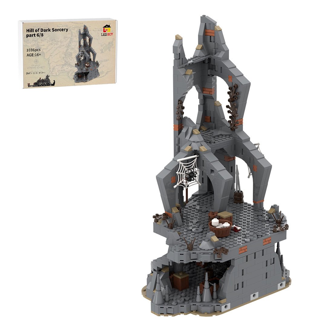 Dieses von LegoMocLoc entworfene und autorisierte Modell basiert auf dem Schwarzmagischen Berg aus berühmten Romanen, Filmen und Fernsehserien. Es besteht aus acht Teilen, die zu diesem großartigen Modell zusammengesetzt werden können. Dies ist das sechste von acht Teilen, einschließlich der Hauptbrücke mit Eingang.