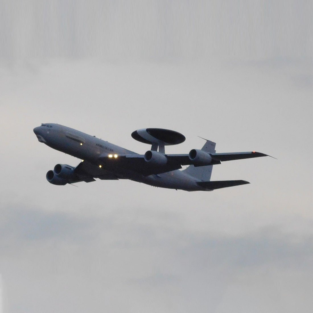 Die Boeing E-3 Sentry AWACS ist ein allwettertaugliches Langstrecken-Warn- und Kontrollflugzeug, das von Boeing für das US-amerikanische AWACS-Programm entwickelt wurde. Es verfügt über eine Blickrichtung nach unten und die Fähigkeit, sowohl bemannte als auch unbemannte Flugzeuge über unterschiedlichem Terrain zu überwachen.