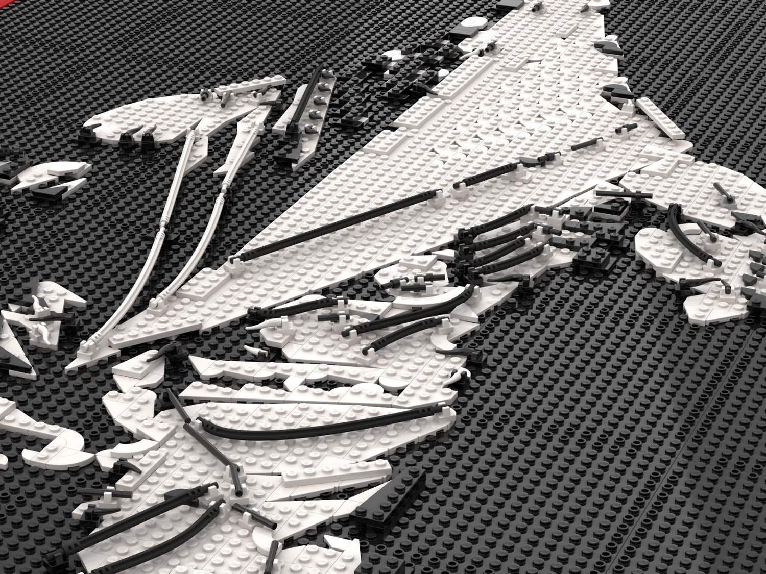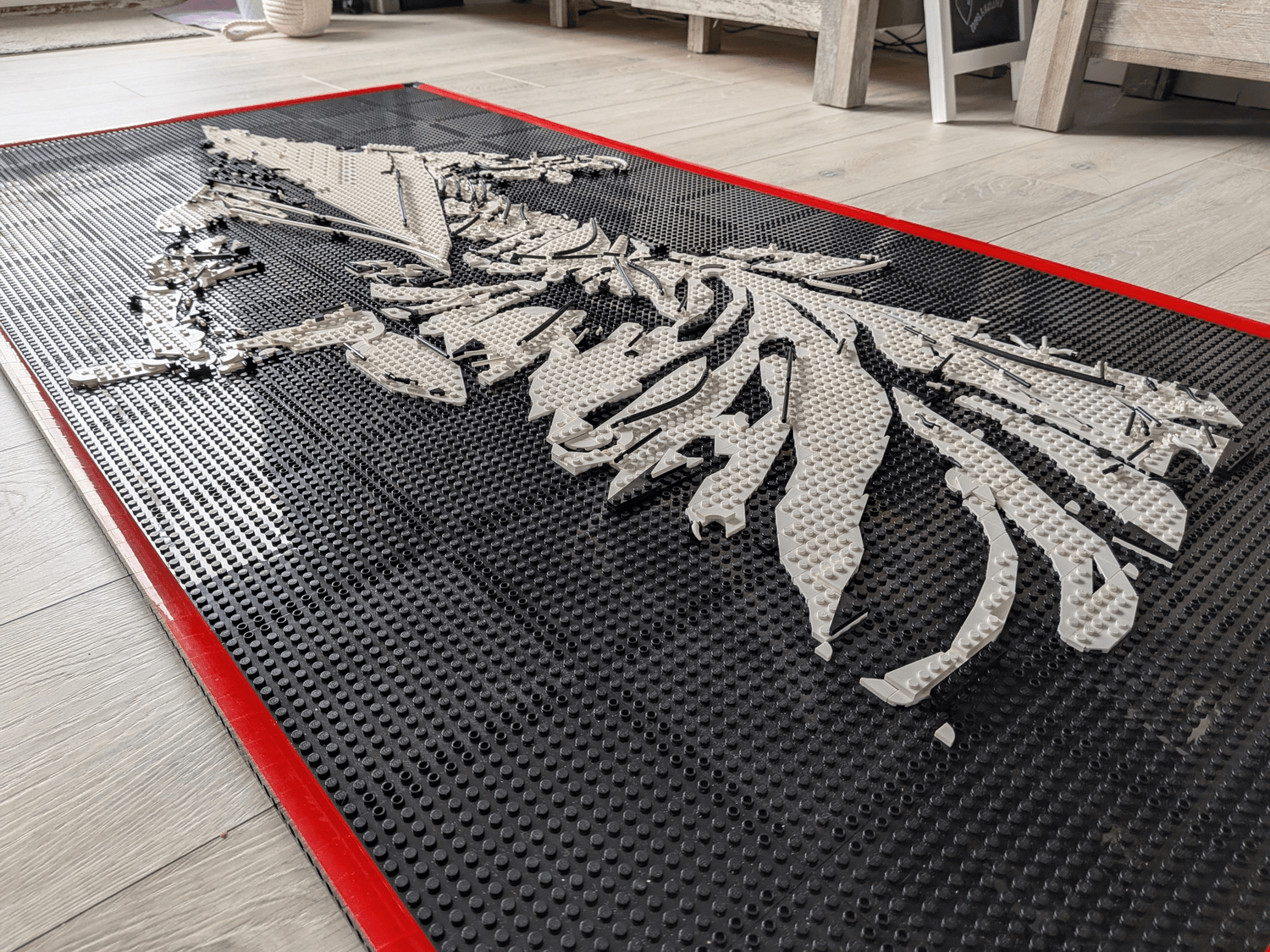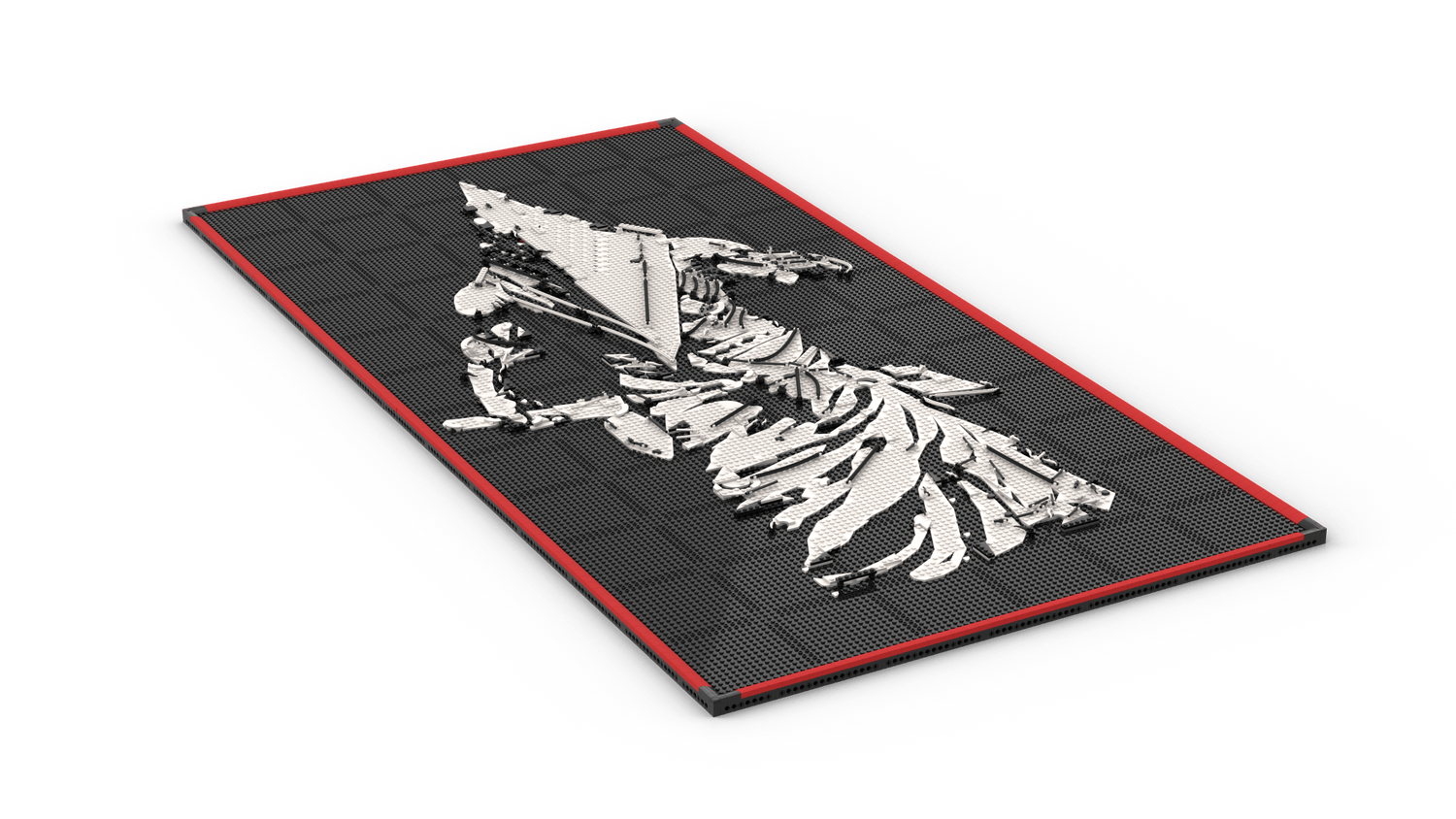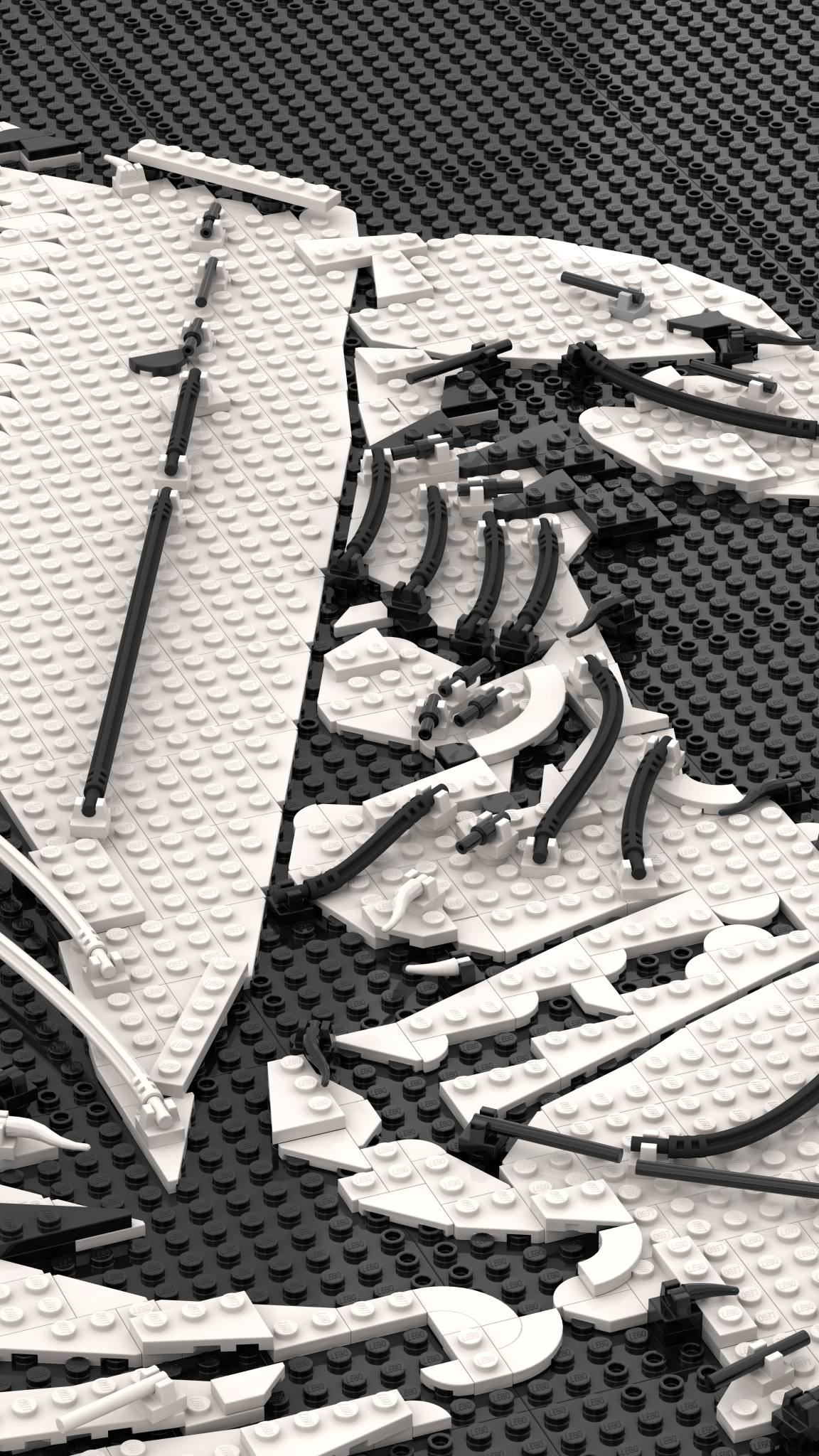 Kein herkömmliches Pixelbild, sondern komplett aus analogen Teilen wie schrägen Platten, Fliesen, Klammern und flexiblen Achsen gefertigt. Inspiriert vom beeindruckenden Modell von krb.