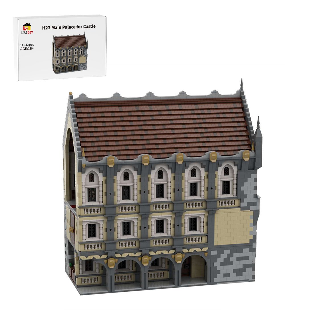 MOC-131268 H23 Hauptpalast mit Bedienstetenquartieren, Küche, königlichem Appartement und Thronsaal ist auf Lager und wird versandt, sobald es wieder verfügbar ist