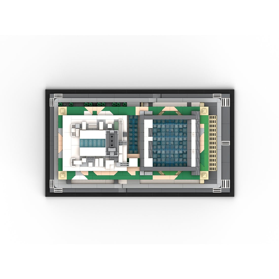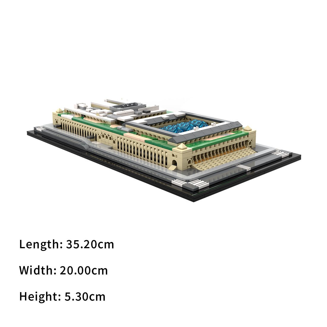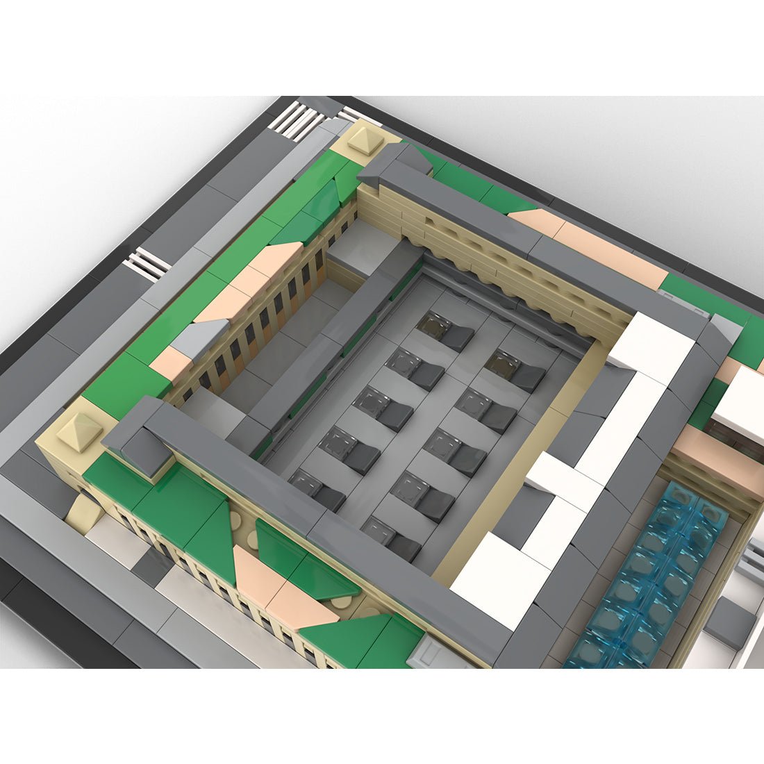 Entworfen und autorisiert von Taters. Dieses Modell im Maßstab 1:800 basiert auf der Moynihan Train Hall in New York City. Bei diesem MOC (My Own Creation) lässt sich das Glasdach abnehmen, um die Bahnhofshalle und die Gleiseingänge freizulegen. Das Modell bietet hervorragenden Spielspaß und hohen Sammlerwert.
