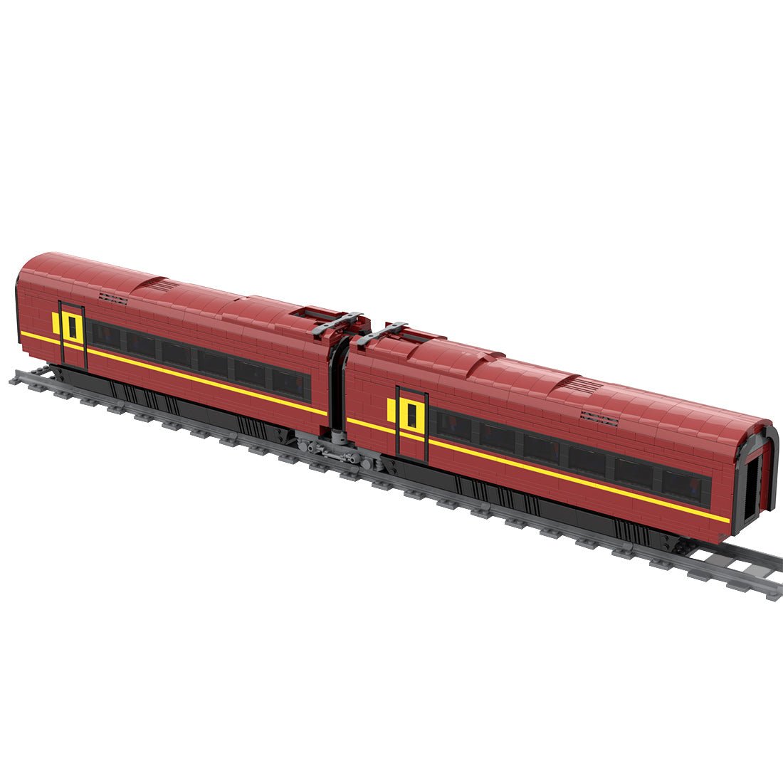 Entworfen und autorisiert von Gabriele. Basierend auf der Club Executive Class des Hochgeschwindigkeitszuges AGV-575. Das gesamte Produkt bildet die purpurrote, stromlinienförmige Erscheinung des Hochgeschwindigkeitszuges originalgetreu nach, der in elf Waggons und vier Teile unterteilt werden kann. Dies ist das Modell C4 C5 – alle in der „Prima Business Class“ und mit Stromabnehmern ausgestattet. Es kann frei ausgewählt und mit anderen Teilen zu einem kompletten AVG-575-Zug kombiniert werden.