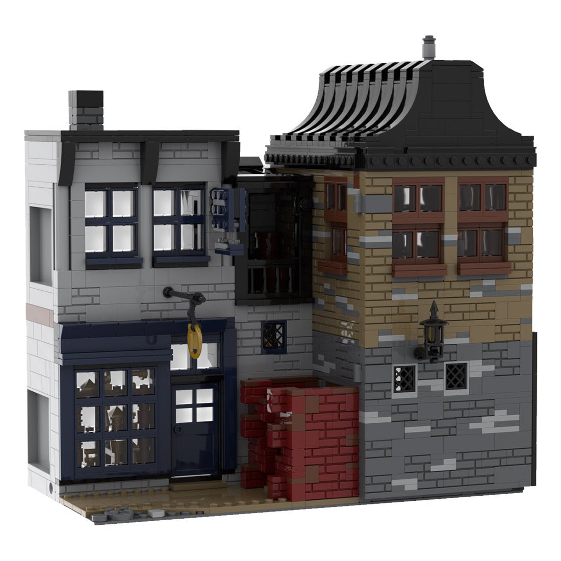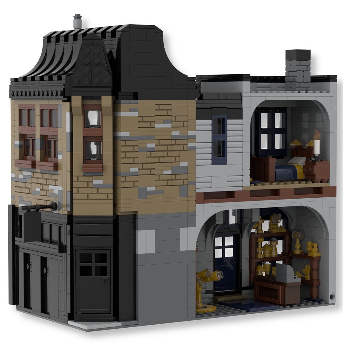 - The iconic bar and gear shop is completed with many realistic movie details to perfectly recreate the setting and environment of the magical world. This challenging and fulfilling modular building is licensed and designed by JL.Bricks.