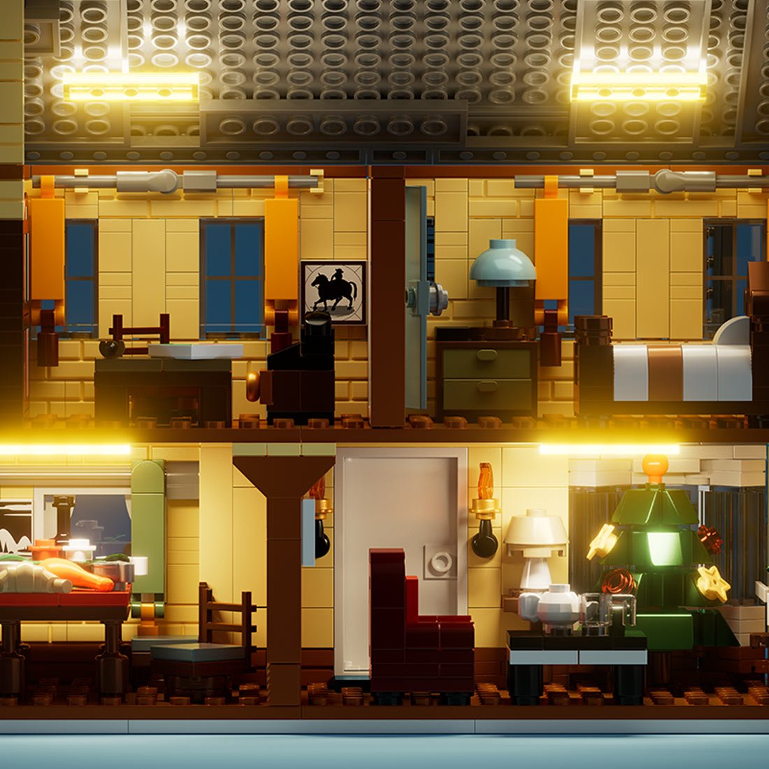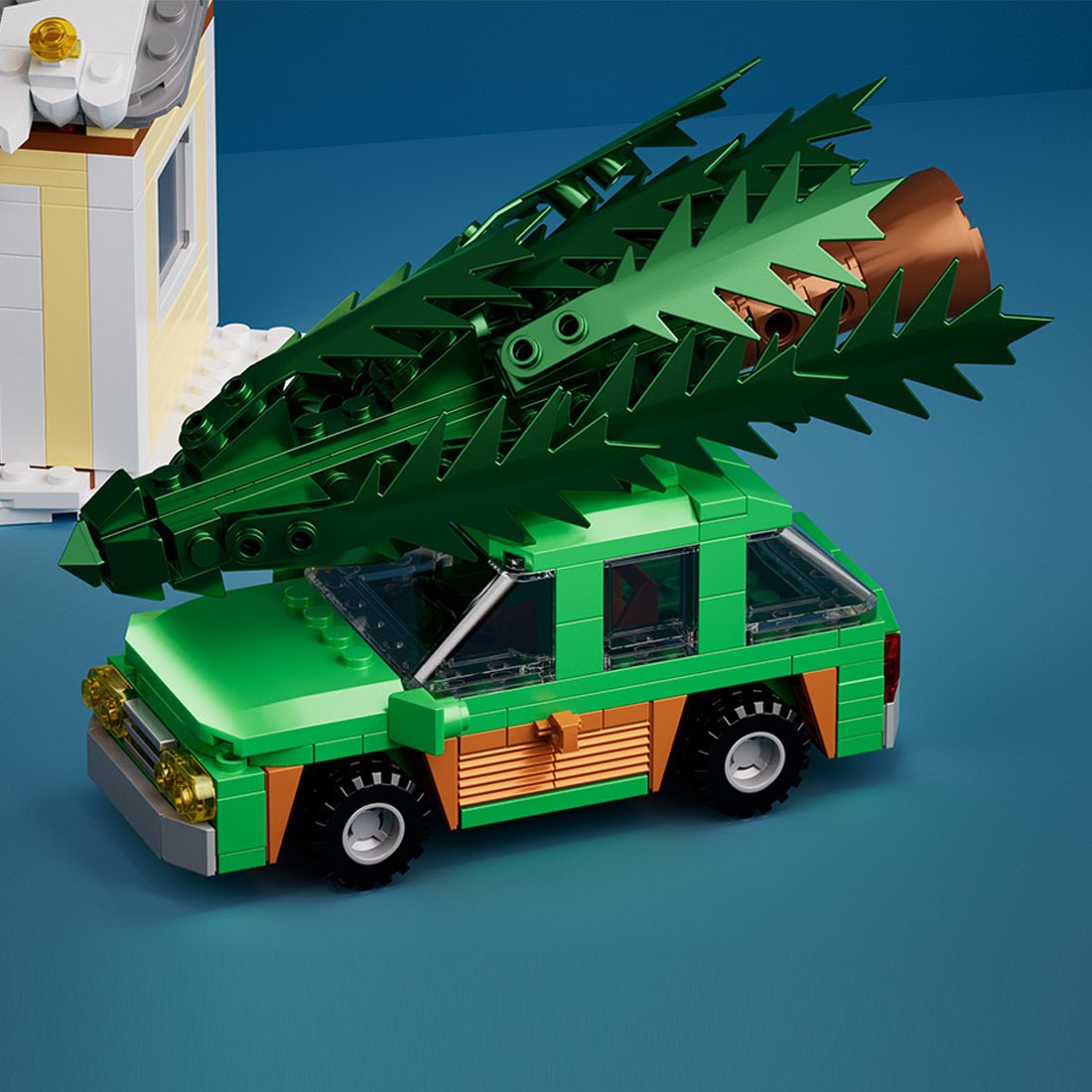Christmas Holiday Home – Snowy Winter House with Lights, Buses & Sleds Klemmbausteine