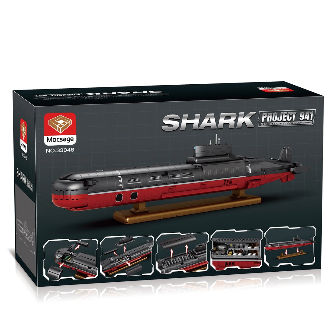 Entworfen und autorisiert von MrJBuilds. Das Produkt umfasst ein schwenkbares Ruder, eine Heckflosse und einen Stabilisator, die alle drehbar sind. Mehrere Teile können zerlegt werden, um den Innenraum freizugeben, darunter den Torpedoraum am Bug, den Wohnraum, die Kommandostation mit Kontrollsystem, das Schlafzimmer und das Kernkraftwerk. Natürlich ist auch der riesige Raketensilo mit 20 zerlegbaren Atomraketen zugänglich. Das Modell kann mit oder ohne Ständer ausgestellt werden und hat einen hohen Dekorations- und Sammlerwert.