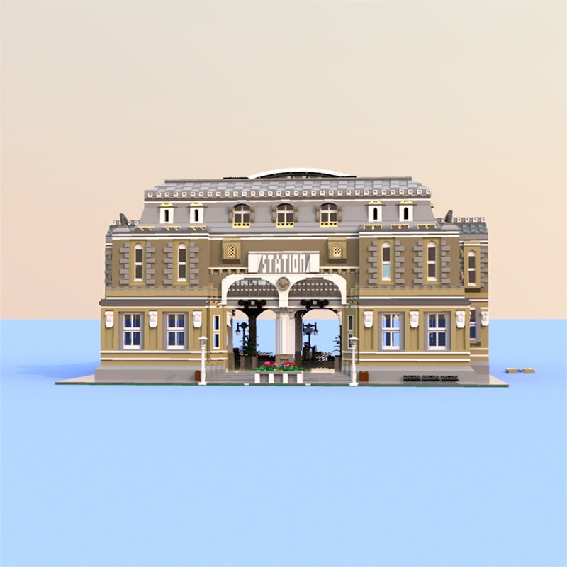 - 2-story train station. The ticket hall is on the first floor, 4 train lines next to it, the trains (not included) depart from here. The second floor is the waiting room. There is also a vending machine, a staff office, a VIP room and many other rooms in this set. 2 staircases on both sides connect the first floor to the second.