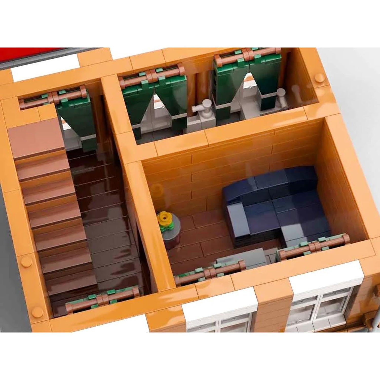 - Contents: The modular model forms a classic German-style home with an open-plan kitchen with dining table on the ground floor, a bathroom and living room on the first floor, and bedrooms for parents and children on the second floor.
