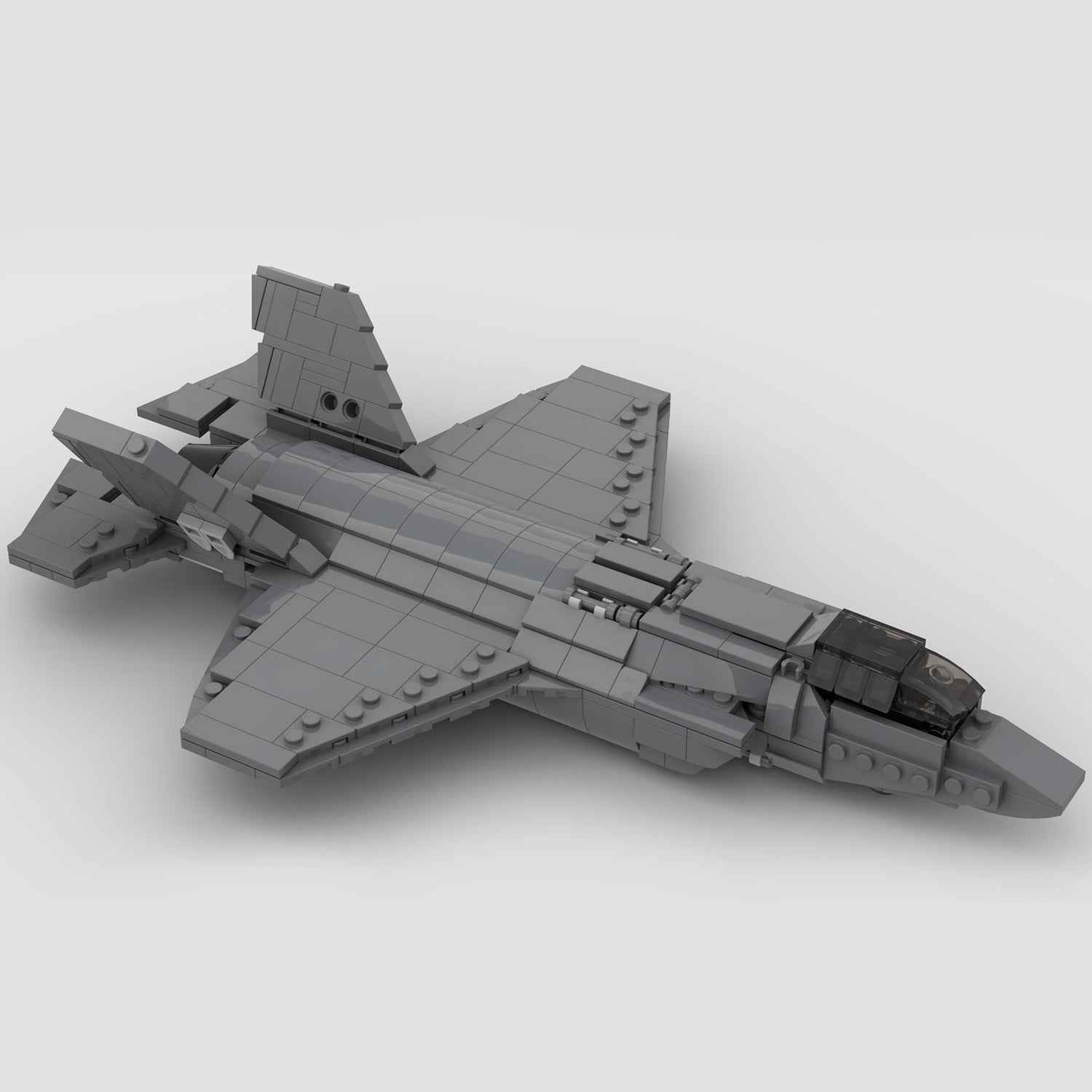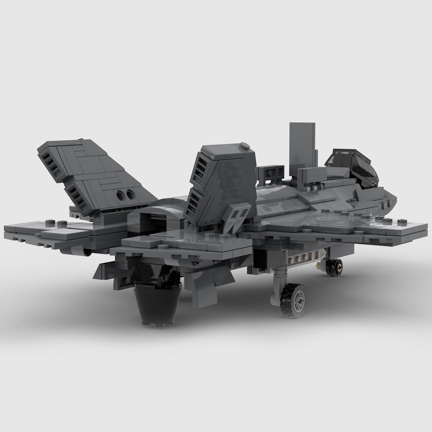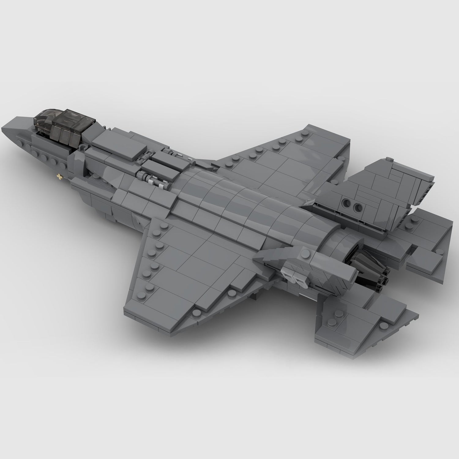 • Designer Description: The Martin F-35 Lightning II is an American single-engine stealth multirole fighter aircraft capable of both air superiority and attack missions. It has a top speed of Mach 1.6 and is the first and only supersonic aircraft capable of STOVL (vertical take off and landing) performance. This MOC is a 550-part 1/50 scale model of the F-35B variant equipped with STOVL capabilities. I choose this variant because I find the extreme versatility and innovative design of this aircraft very appealing. For my previous project, the F-22 Raptor, I chose 1:50 scale, using mostly modified panels and classic bricks, as well as tiles and slants, to make this model as close to reality as possible without making it big and expensive. You will be amazed at the amount of detail and the ease of building this model. The MOC guide comes as a PDF guide. Features of the F-35 Lightning II: - Retractable front landing gear - Retractable main landing gear - Opening windshield - Opening lower weapon bays (each with a rocket-shaped plate design) - Adjustable tail stabilizers - Adjustable flaperons - Rotating lift fan - Opening top and bottom lift fan doors - Pivoting nozzle - to opening lower jet doors Model Specifications: Scale: 1: 50 Parts: 550 Size in centimeters: 31.6x20.8x9.8 Size in inches: 12.4x8.2x3.8 Size in lugs: 39.5 x 26 x 12.2 Weight: 360 g / 12.705 oz This model is not designed to fly.