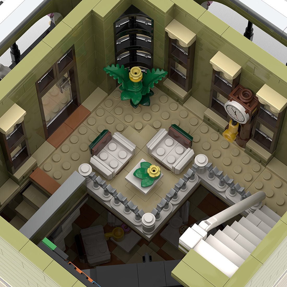 Das von PL MOCs entworfene Street View-Bausteinmodell „Jazz Cafe“ ist ein mehrstöckiges Meisterwerk. Im Erdgeschoss befindet sich ein Musiksaal mit Instrumenten und einem Mikrofon für die Künstler sowie eine Eckrutsche mit Keksen und einer Kaffeemaschine. Unter der Treppe ist eine Toilette versteckt. Eine Sängerstatue überblickt den Saal. Der zweite Stock bietet Sitzgelegenheiten für Gäste mit einer Vintage-Uhr und Zugang zum Balkon. Der dritte Stock umfasst eine Sängerlounge, einen Kamin, einen Schreibtisch, ein Badezimmer und einen Balkontunnel.