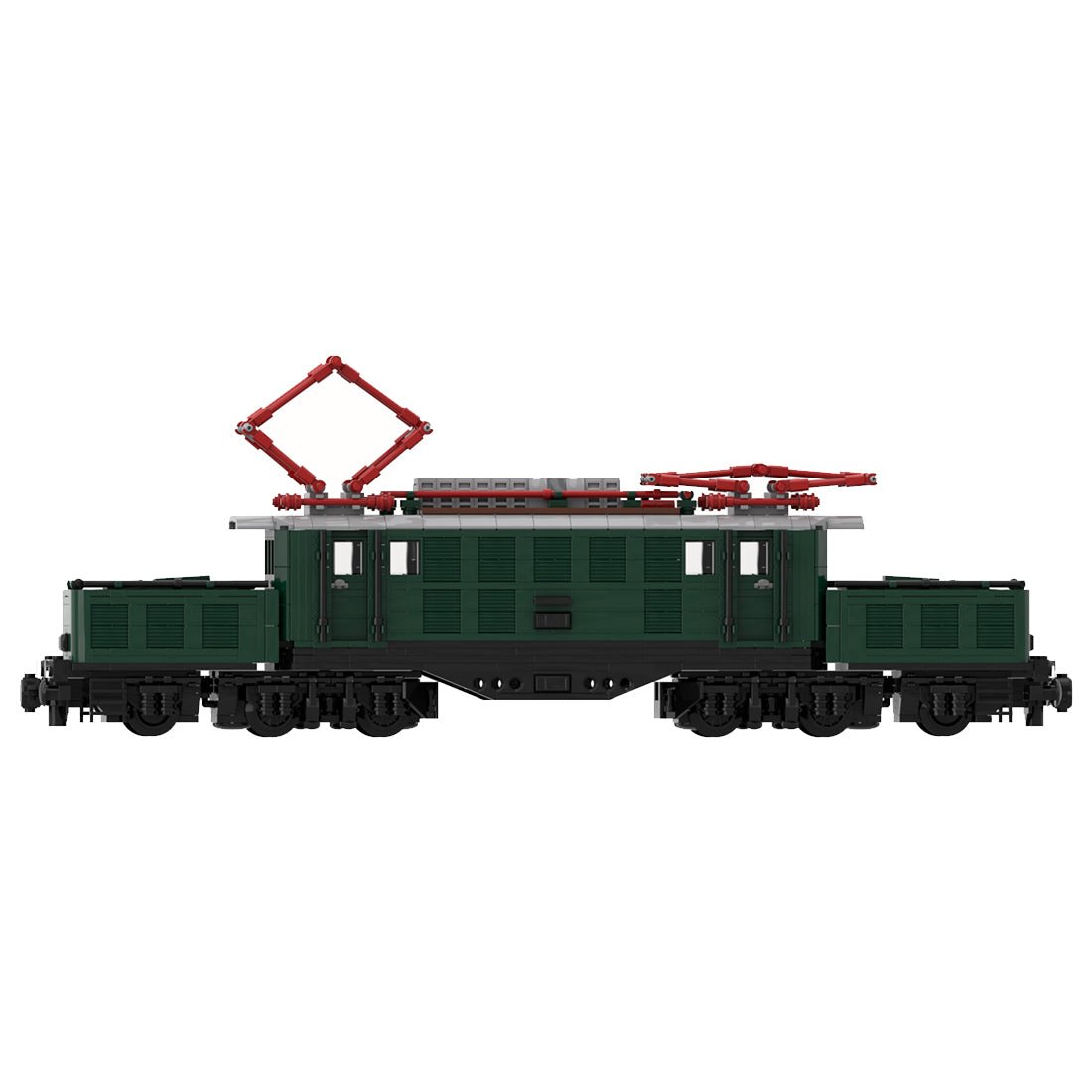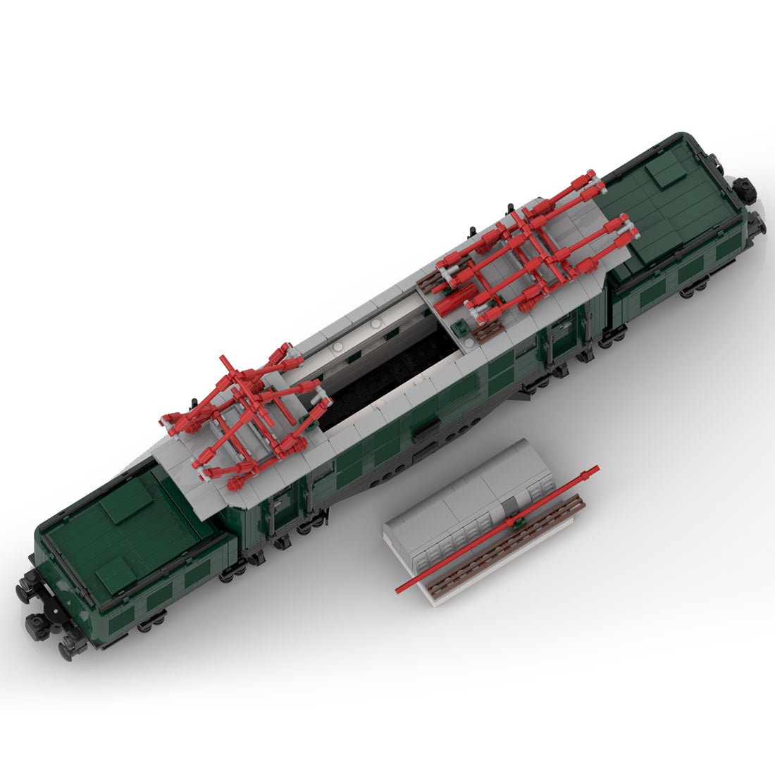 The E 94 series, also known as the "German Crocodile", is a series of six-axle heavy electric locomotives from the Deutsche Reichsbahn-Gesellschaft that were designed for freight train service. They were purchased by the Deutsche Reichsbahn primarily for the electrified low mountain ranges in southern Germany and the mountain routes in Silesia, as well as the Alpine routes added with the "annexation" of Austria to the German Reich. The E94 001 was the first locomotive of the new series, which was completed on April 22, 1940. The classification as a war-critical capital good made it possible to purchase it under duress even during the war. Of the total of 285 machines ordered, only 145 were completed by the end of the war. After the Second World War, most of the locomotives remained with the Deutsche Bundesbahn (DB). Even after the end of the war, locomotives were completed from existing parts and put into service by the DB and the Austrian Federal Railways (ÖBB). Information about the Moc: This Moc is 8 wide and has a length of 57 studs and a height of 13 to 21 studs, depending on how the pantographs are extended. The locomotive can easily be equipped with up to two traction motors. There is enough space inside the locomotive for a battery box and an IR receiver. There is an opening in the base plate through which the cables can be easily laid. Part of the roof can also be removed, making it very easy to access the battery box. The white parts can be replaced with any color as they are not visible from the outside.