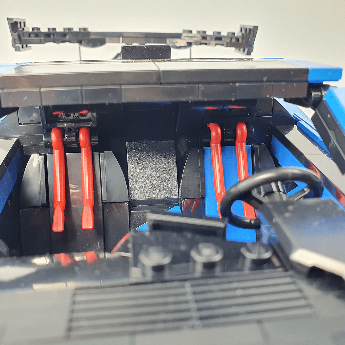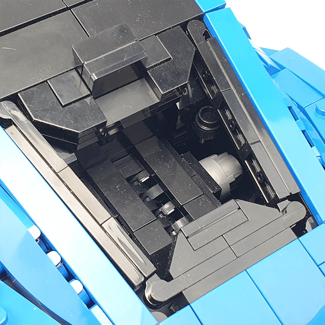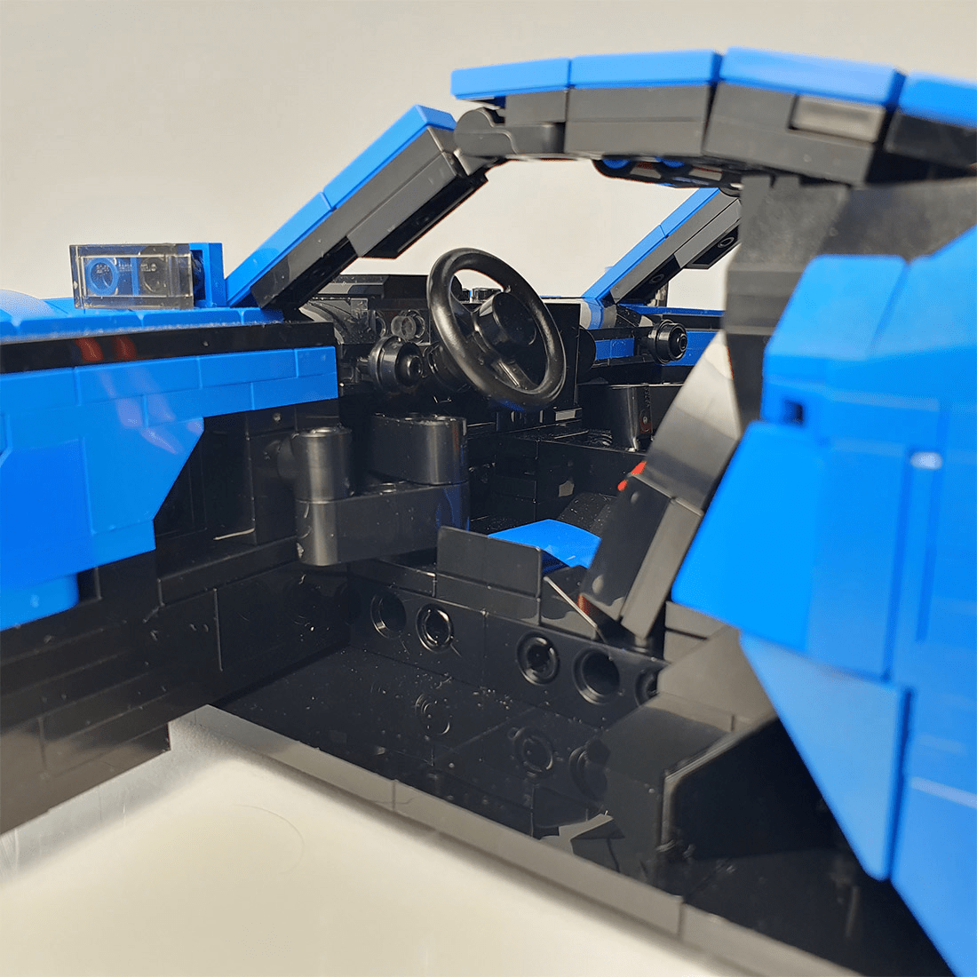 Entworfen und lizenziert von Pingubricks. Hergestellt aus Bausteinen, um ein modernes Sportwagenmodell zu werden. Zu öffnende Tür und Motorhaube mit detailliertem Fahrzeuginnenraum und erhöhtem Windleitwerk, das aus jedem Blickwinkel ein perfektes Erscheinungsbild bietet.