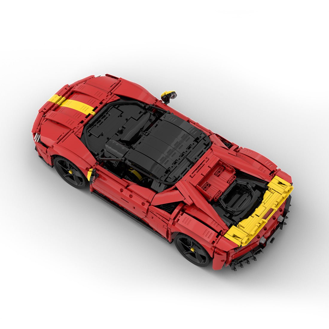 - Designed by Lukas2020, this set features a carefully designed interior with detailed seats and dashboard, a new grille, subtle new door locks and a redesigned rear spoiler that resembles the real car. It features working front and rear suspension, a simulated V8 engine, an 8-speed gearbox with paddle shifters (D+N+R, similar to the Sian) and opening front and rear hoods. The doors feature an axle locking mechanism, while the rear wing is adjustable via gears. With steerable wheels controlled via a Hand of Gear steering system, this model offers a realistic and exciting building experience.