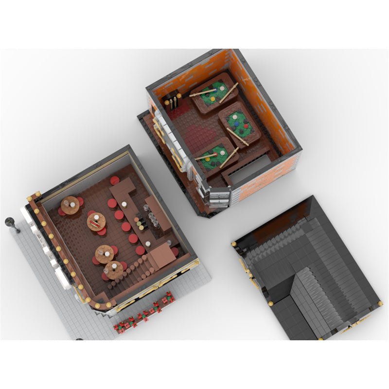 - 2-storey club model made of gray and orange bricks, the structure and decoration have been well designed. French windows allow you to see the interior clearly, also the modular design allows you to see more details by simply detaching the building. Bar table, bar stool, pool table...everything in the bar can be found in this model.