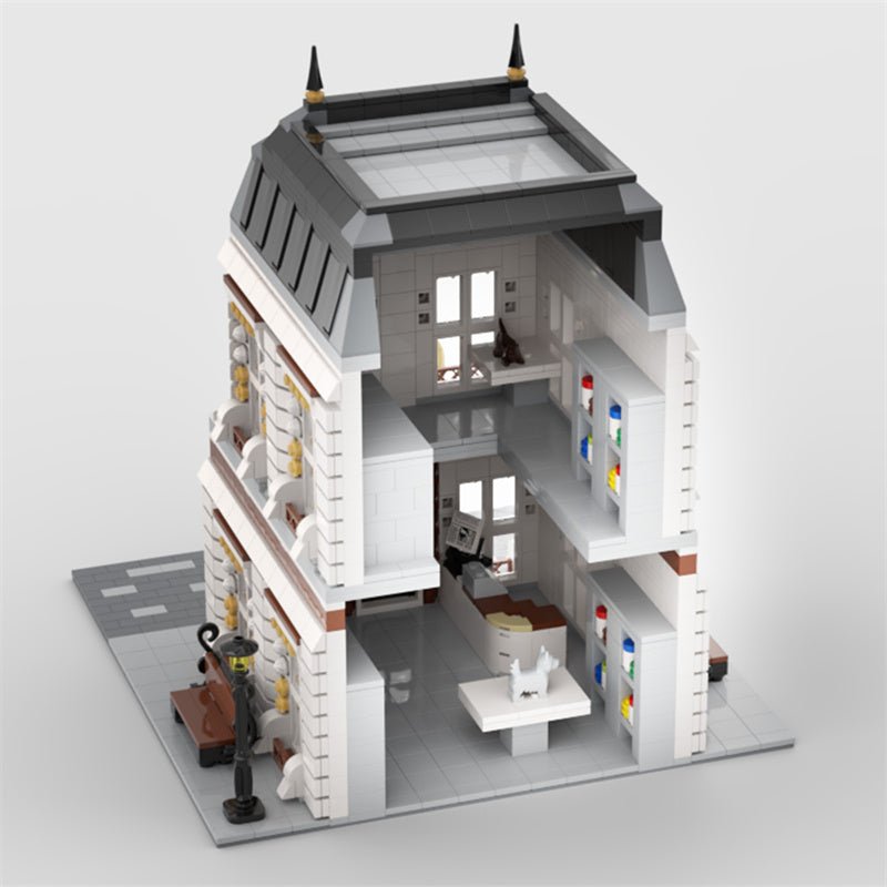 - Cute animal dot model with large dog shop sign above the entrance. Inside the building there is plenty of pet food and medicine, as well as a cash register.