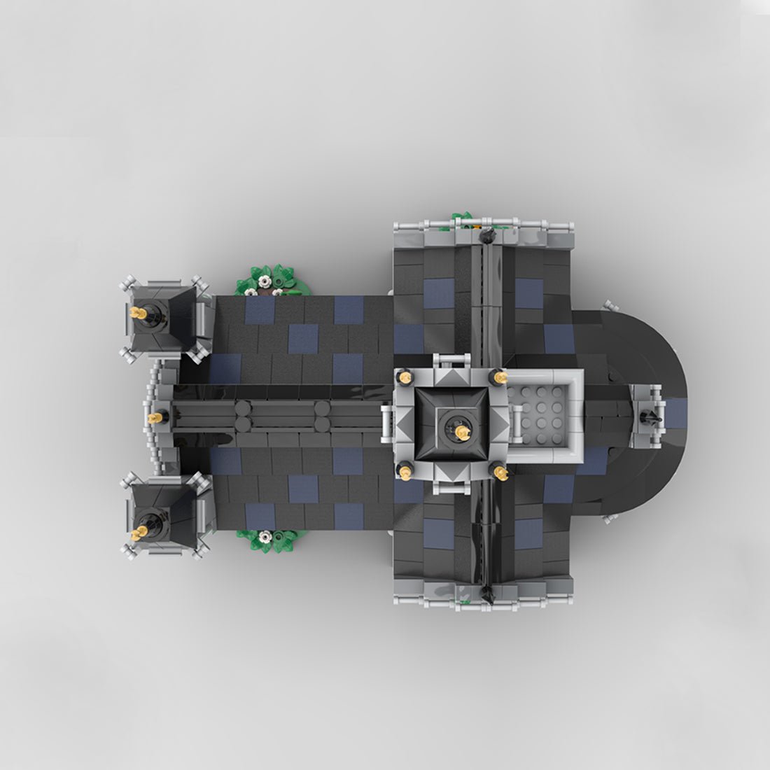 Seit bricks_fan_uy das MOC „Kapelle“ erstellt hat, wollte er eine Kirche mit größerer Grundfläche entwerfen. Ehrlich gesagt: Für eine richtige Kathedrale braucht man Tausende von Teilen, und das ist nicht wirklich sein Ding. Deshalb möchte er den Eindruck einer solchen erwecken, die Gesamtgröße (ca. 1450 Teile) aber dennoch unter Kontrolle halten und einige Spielfunktionen bieten.