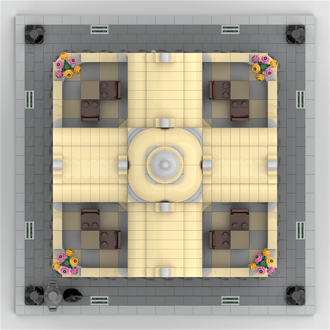 Entworfen und lizenziert von @lucapetraglia.it. Dies ist ein wunderschönes Esszimmer im europäischen Stil. Der Hauptkörper der Uhr ist hellbeige mit grauen Zierlinien, die ihm ein elegantes Aussehen verleihen. Das Gebäude hat zwei Stockwerke. Das erste Stockwerk hat eine Kuppelform, mit einer kleinen Turmspitze als Dekoration an der Spitze und runde Uhren auf beiden Seiten. Das obere Stockwerk hat einen offenen Korridor mit Säulen, die die Decke stützen. Das Geländer ist wunderschön gestaltet und mit bunten Blumen und Topfpflanzen geschmückt, die dem Raum eine lebendige Atmosphäre verleihen. Die Fenster unten sind ordentlich angeordnet und an den Rändern sind bunte Blumen angebracht. An den Ecken des Gebäudes stehen schwarze Straßenlaternen und auf einer Seite stehen schwarze, detailreiche Mülltonnen. Die Gesamtform des Gebäudes ist eine Mischung aus klassischen und raffinierten Merkmalen, die es wie ein elegantes Gebäude an einer europäischen Straßenecke aussehen lassen, voller künstlerischem Flair und lebendiger Atmosphäre.