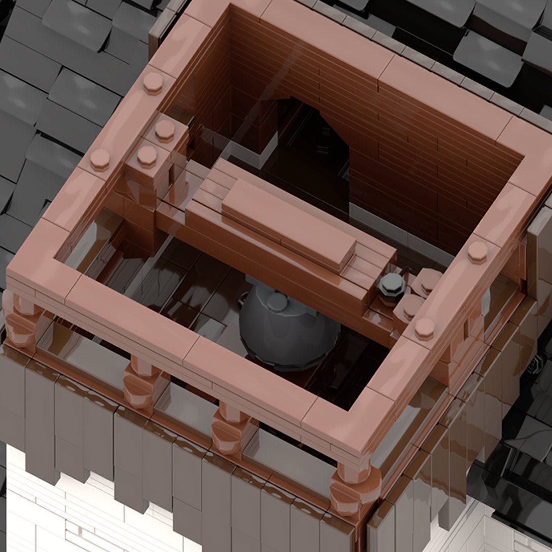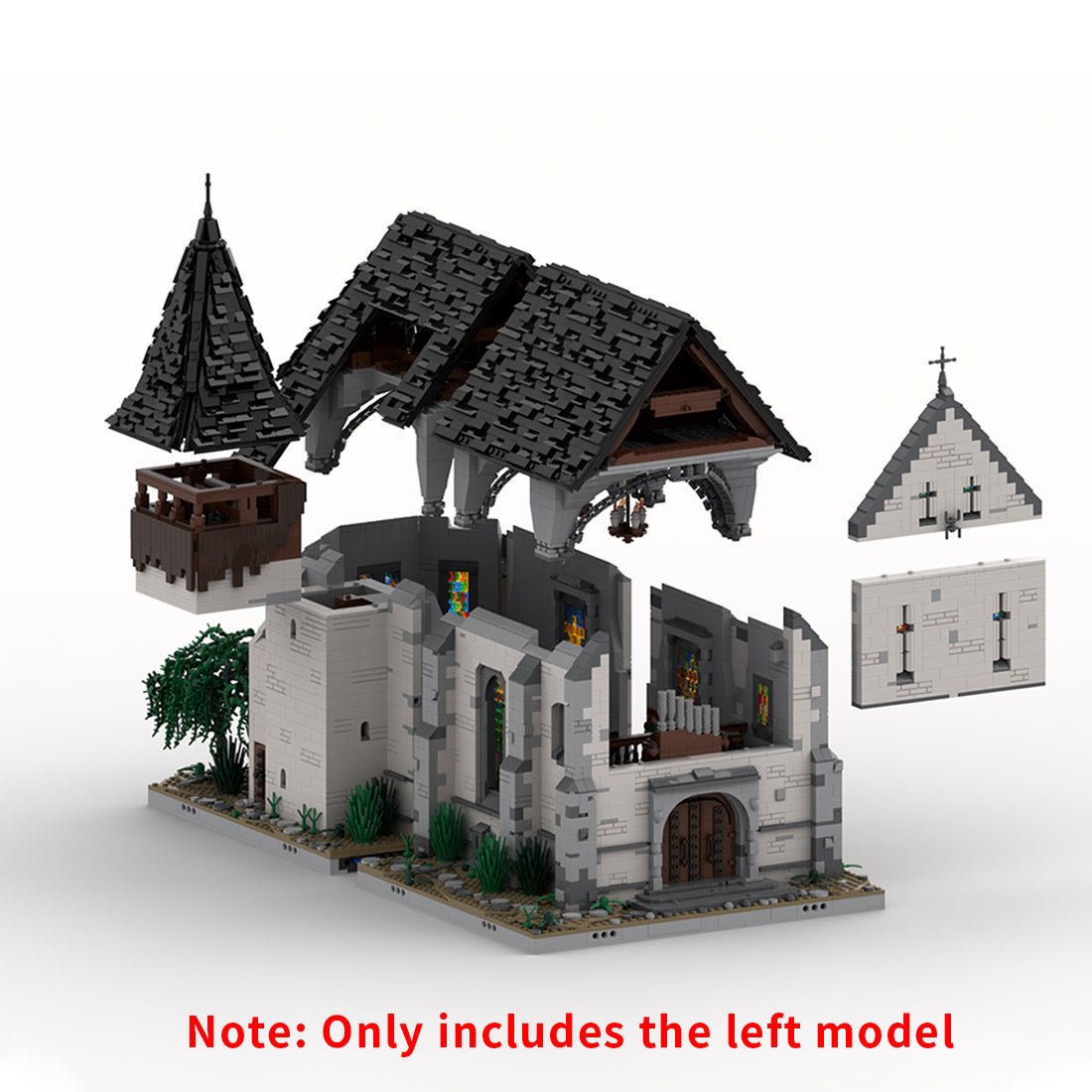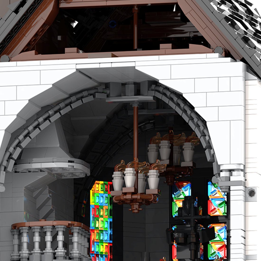 Dieses von Taylorsbrick_DD entworfene und autorisierte Produkt ist von mittelalterlichen Dorfkirchen inspiriert und dient als zweiter Teil des Kirchenmodells. Es verfügt über abnehmbare Glockentürme, Türme und verschiedene Außenstrukturen sowie Torbögen, eine Kanzel, einen Altarraum, Kirchenbänke und aufwendig gestaltete Fenster.