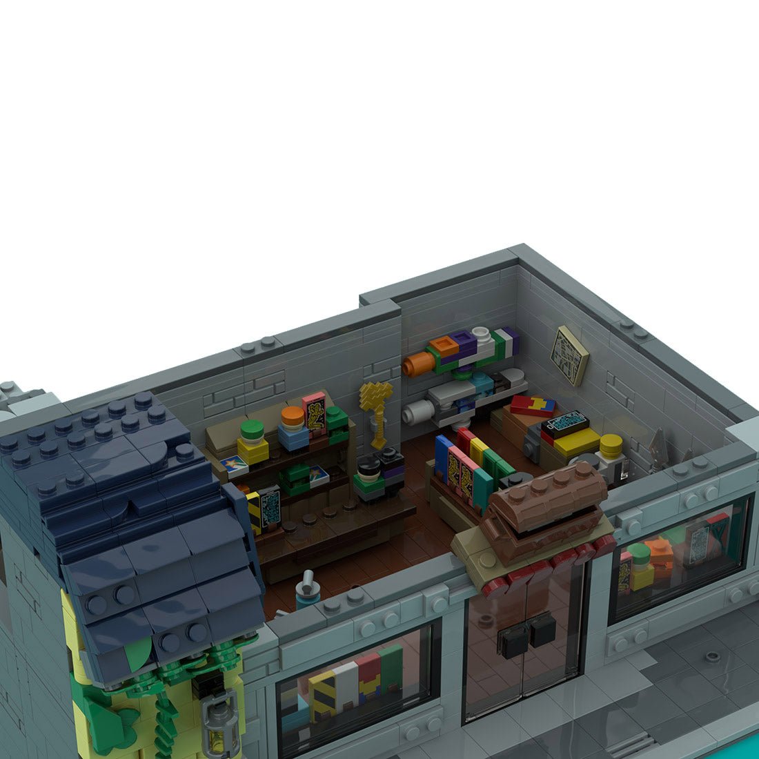 Dieses von Penguins und Plastic erstellte und autorisierte Modell eines Comicladens aus Pearl mit rotem Dach, klassischen Außenwänden, wunderschönen Fassaden und Straßenlaternen verleiht einen Hauch von Schönheit.