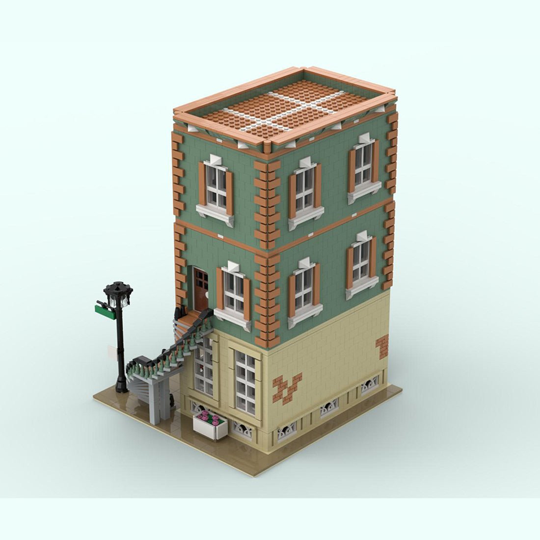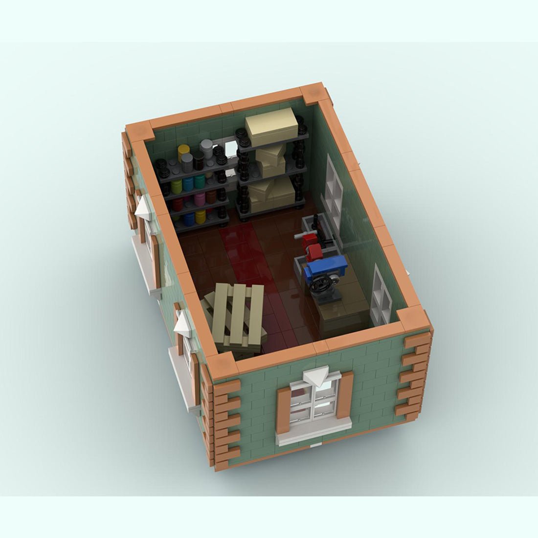Dieses von Alessandro Maffioli entworfene und autorisierte Modell ist in drei Stockwerke unterteilt. Im ersten Stock befindet sich ein Rahmengeschäft, in dem Kunden verschiedene Rahmen angeboten werden. Eine Wendeltreppe im Außenbereich führt zum Lagerraum im zweiten Stock mit großen Regalen und einem Luftauslass. Der dritte Stock ist ein kleines Studio mit Materialien und einer geräumigen Werkbank. Das Äußere ist in Beige- und Hellgrüntönen gehalten, akzentuiert durch braune Ziegel, was ihm ein klassisches Aussehen verleiht. Ein großes Schild macht es von der Straße aus leicht sichtbar.