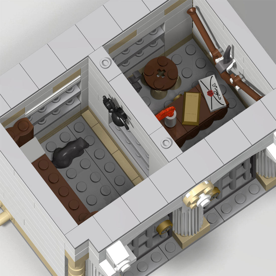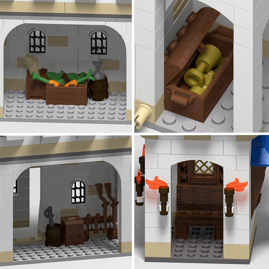 Es heißt English Fort und ist ein modulares englisches Fort aus der Kolonialzeit. Als Inspiration diente mir das Set 6242: Soldier’s Fort. Es besteht aus verschiedenen Modulen, die man auf verschiedene Weise miteinander kombinieren kann. Es hat eine Größe von ca. 32x32 Noppen und besteht aus vier Türmen, einem Portal, zwei Seitenwänden und einem zweistöckigen Gebäude. Jedes Modul lässt sich öffnen, um hineinzuschauen. Jedes Modul lässt sich öffnen, um hineinzuschauen. Außerdem gibt es 2 Geheimgänge und die Trennwand im Erdgeschoss des Gebäudes ist abnehmbar, um den Spielspaß zu erhöhen.