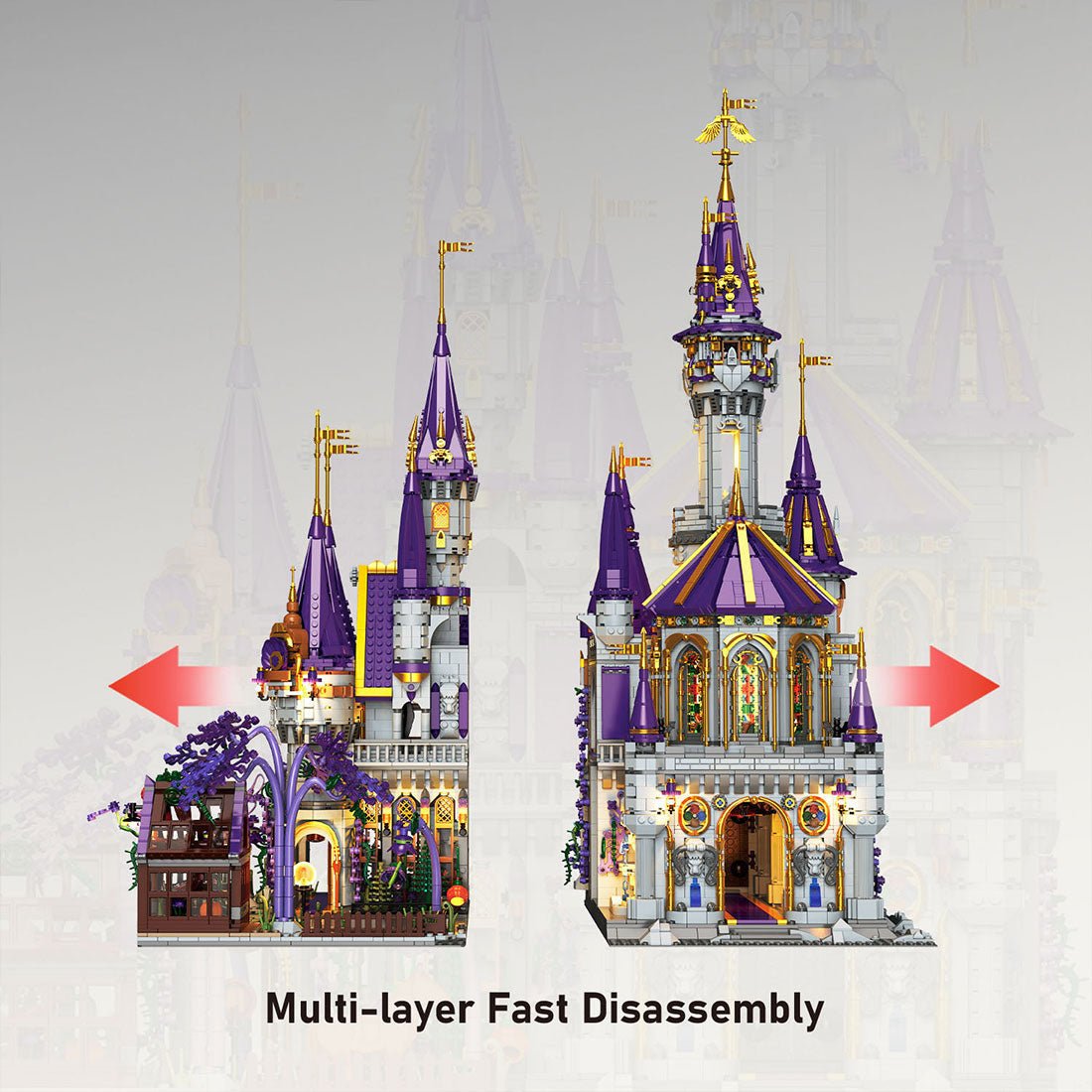 This enchanting magic castle is painted in a mystical purple and will add a sense of wonder and magic to your collection. Every corner of this castle is carefully designed and features a variety of furniture and decorations that add to its charm. It features a quick-release design and is not only durable but also easy to assemble and transport, making it a perfect display piece.