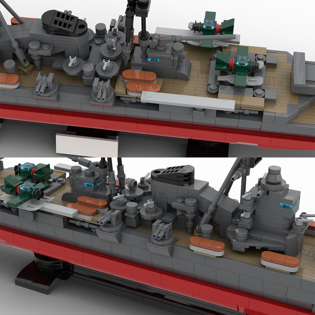 Designed and authorized by count_of_brick, this carefully crafted model faithfully recreates the details and design elements of the legendary Japanese heavy cruiser Suzuya. Equipped with five triple turrets with an elevation angle of 55° and four double turrets.