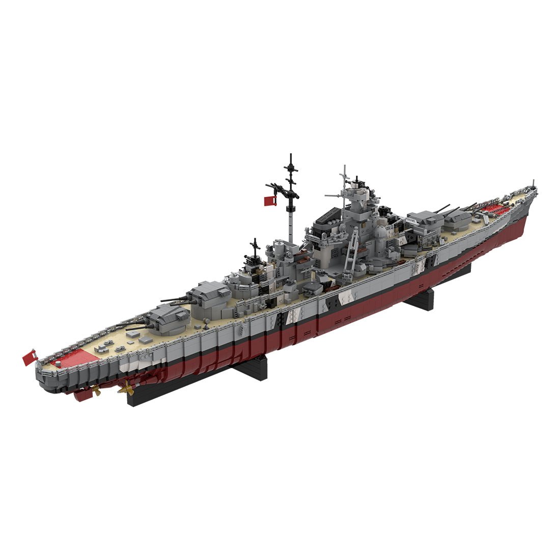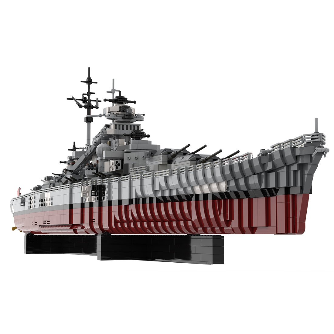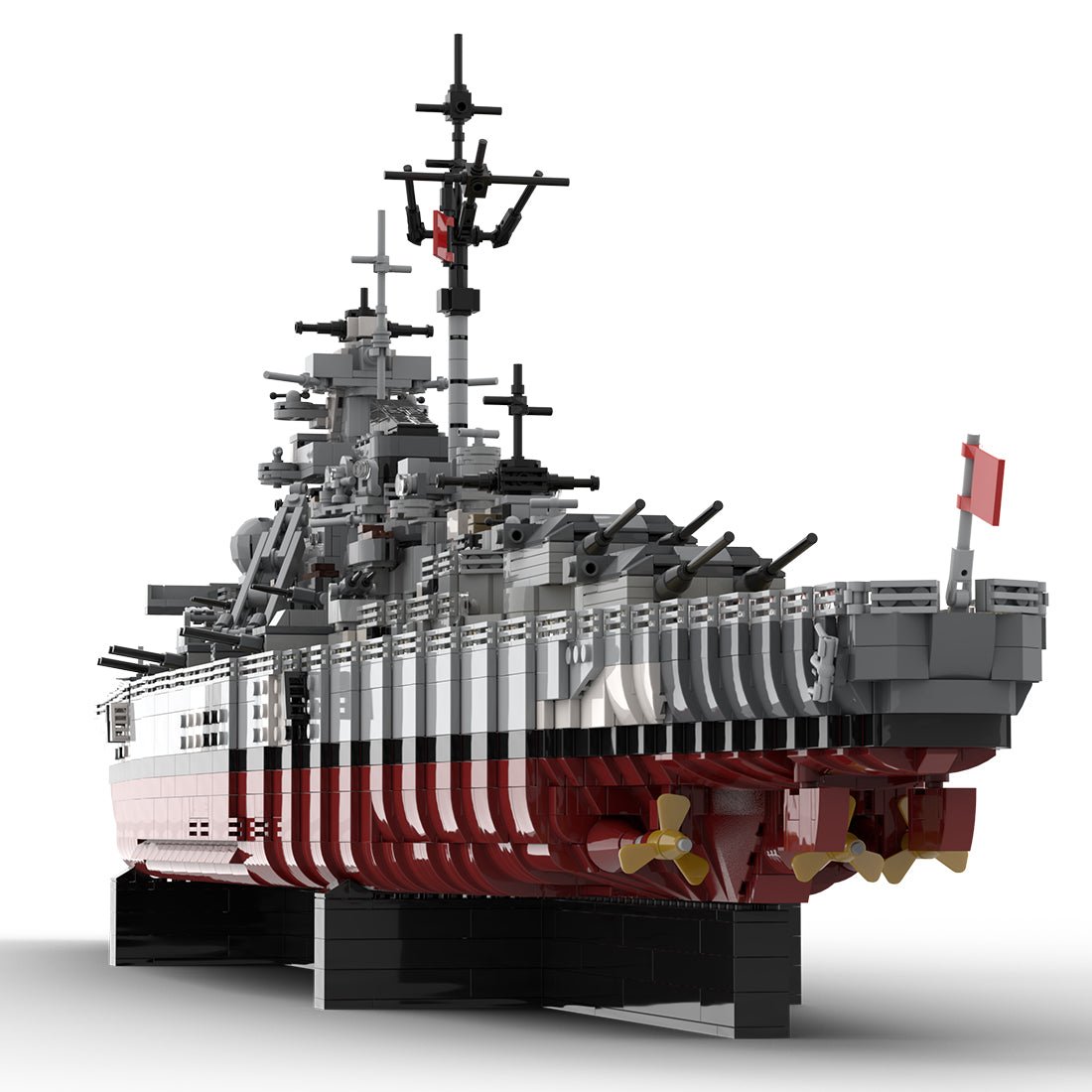 Das Modell ist 125 cm lang, 18 cm breit und ca. 31 cm hoch, es besteht aus ca. 7180 Steinen.Die Türme der Hauptartillerie, der Mittelartillerie und der schweren Flugabwehr sind voll drehbar und können in der Höhe ausgerichtet werden.Die beiden 12t Bordkräne sind ebenfalls voll beweglich. In der Mitte des Schiffes befinden sich die beiden seitlich ausfahrbaren Flugzeugkatapulte. Der Hangar unter dem Hauptmast verfügt über eine Schiebetür, die geöffnet werden kann und in der ein Aufklärungsflugzeug vom Typ „Arado Ar 196“ untergebracht werden kann. Im Bereich des Schornsteins und auf dem Hangar werden verschiedene Verkehrsboote, Motorbarkassen und Kutter verstaut.Deck und Aufbau lassen sich in zwei Teilen abnehmen