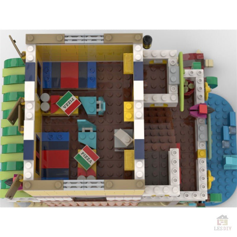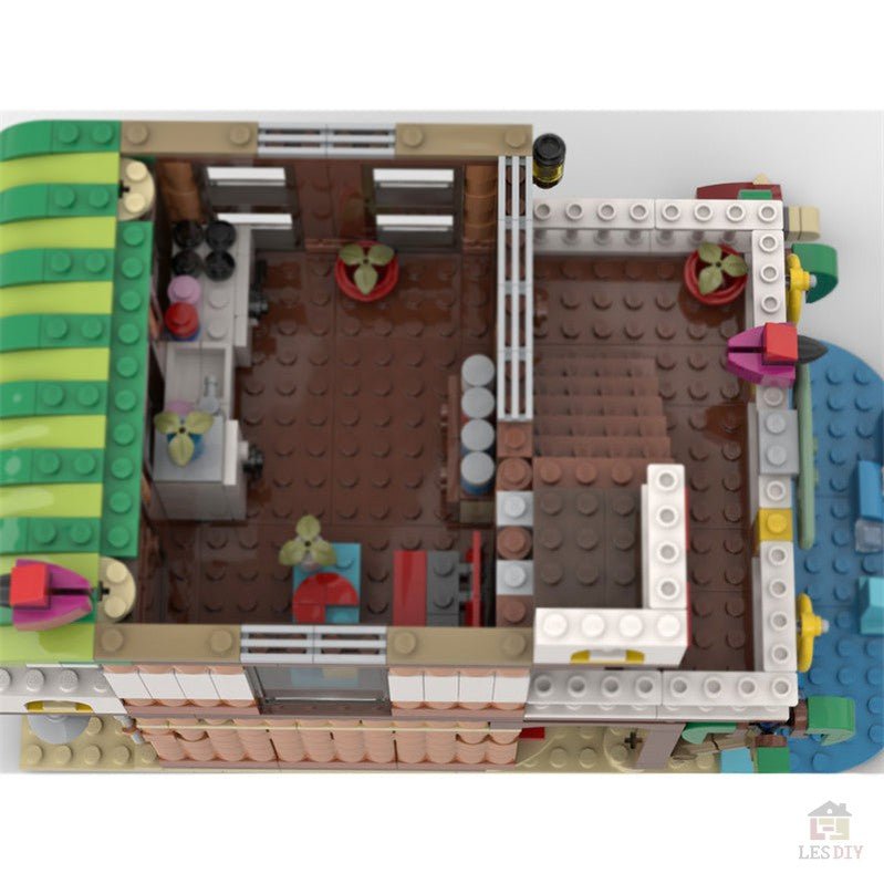 - The Tiki Surf Bar is a modular building with 3 floors. On the ground floor there is a diving equipment rental and shop. There is a bar/lounge on the second and third floors that serves food and drinks to all beachgoers and visitors. The footprint of the entire MOC is 16x32 studs; The MOC can optionally be built on a 16x32 base plate (base plate to be purchased separately), and the base plate also allows the placement of models of dolphins, turtles and sailing boats.