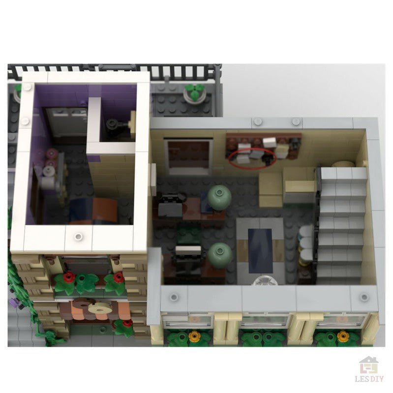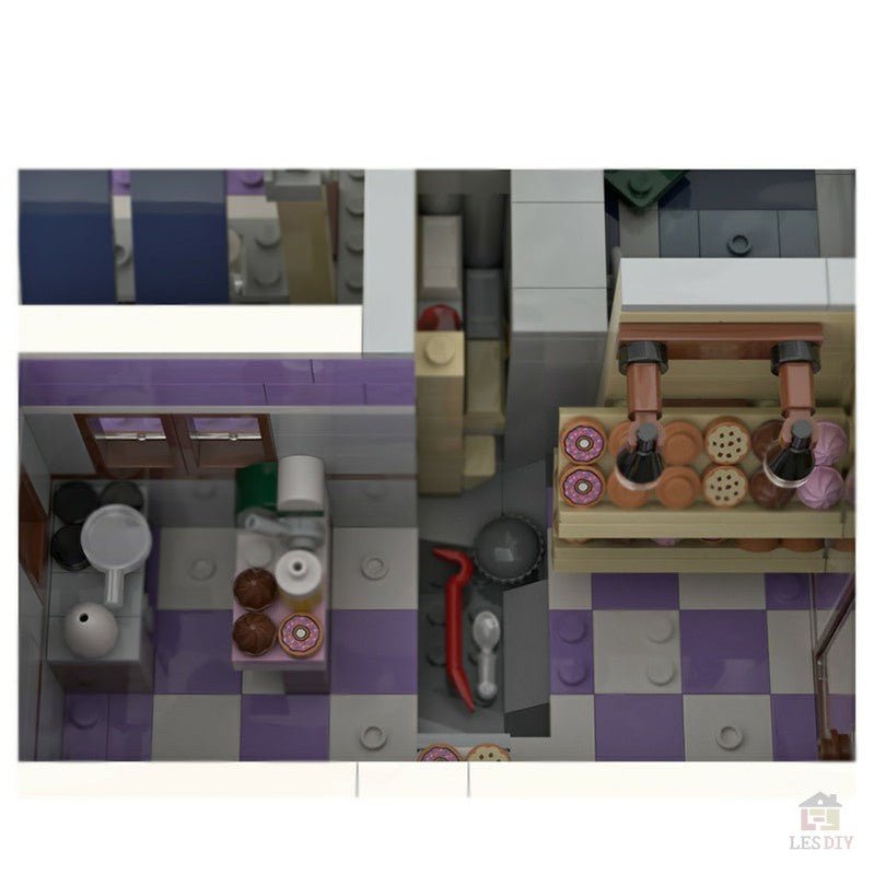 - Design: The modular building consists of 5 different facilities. There is a jewelry store and a donuts shop on the ground floor. On the second floor is a police women's apartment and a small publishing office. The top floor is a youtuber's studio. Constructed from different brick colors and equipped with lots of mini furniture, building the model kit is no doubt fun.