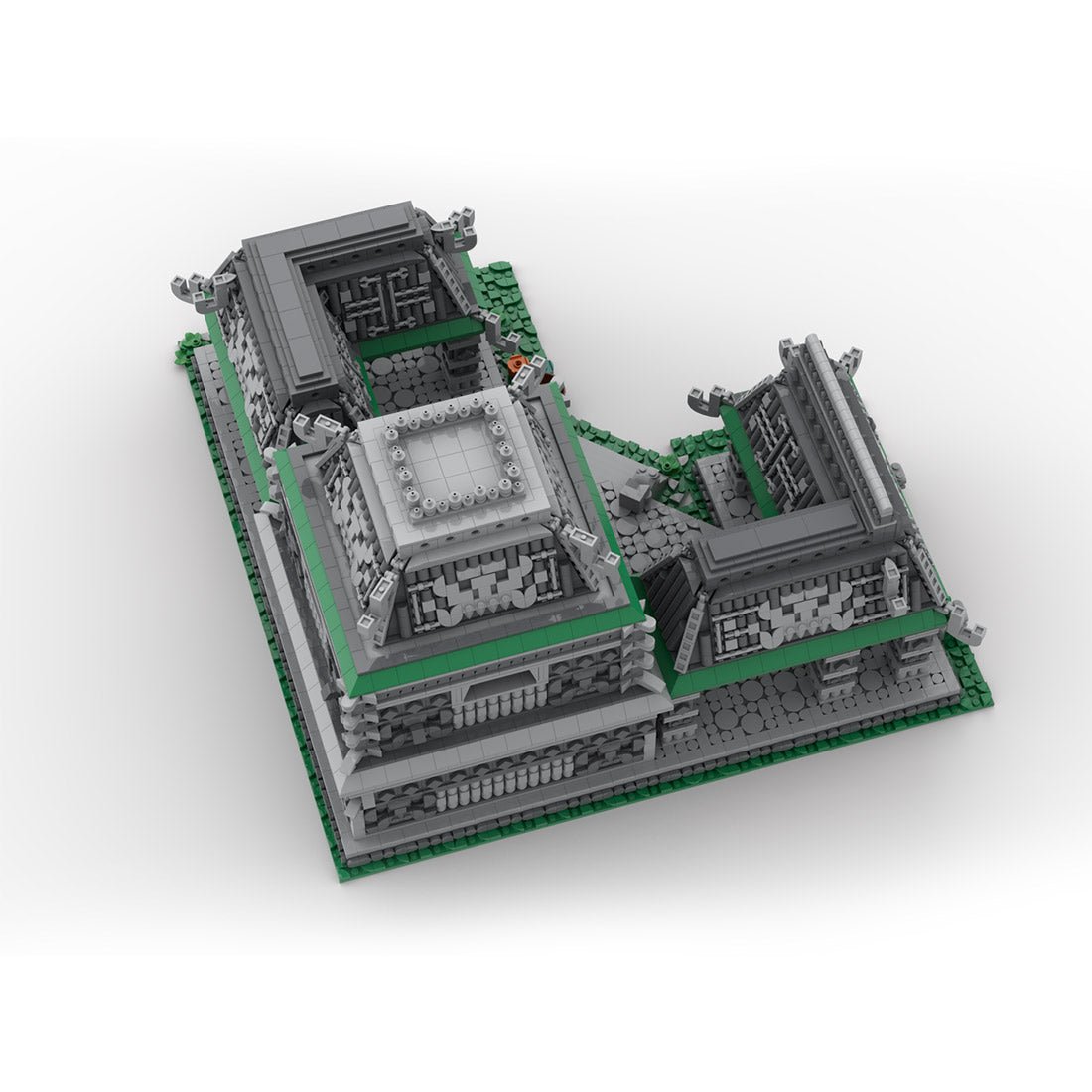 Entworfen und autorisiert von magurean.paul. Dieses aus Bausteinen konstruierte Modell wird von grauen Blöcken dominiert, die eine ruhige und feierliche Atmosphäre schaffen, die Textur von Mauerwerk simulieren und die Schwere und Solidität mittelalterlicher Architektur hervorheben. Eine schillernde Palette farbenfroher Tongefäße, Obstkörbe und anderer kleiner Accessoires ist auf dem Boden ausgebreitet und stellt die geschäftige Szene eines mittelalterlichen Handelszentrums voller Waren im Überfluss dar. Man kann fast das ständige Geschrei der Straßenhändler und das Feilschen hören.