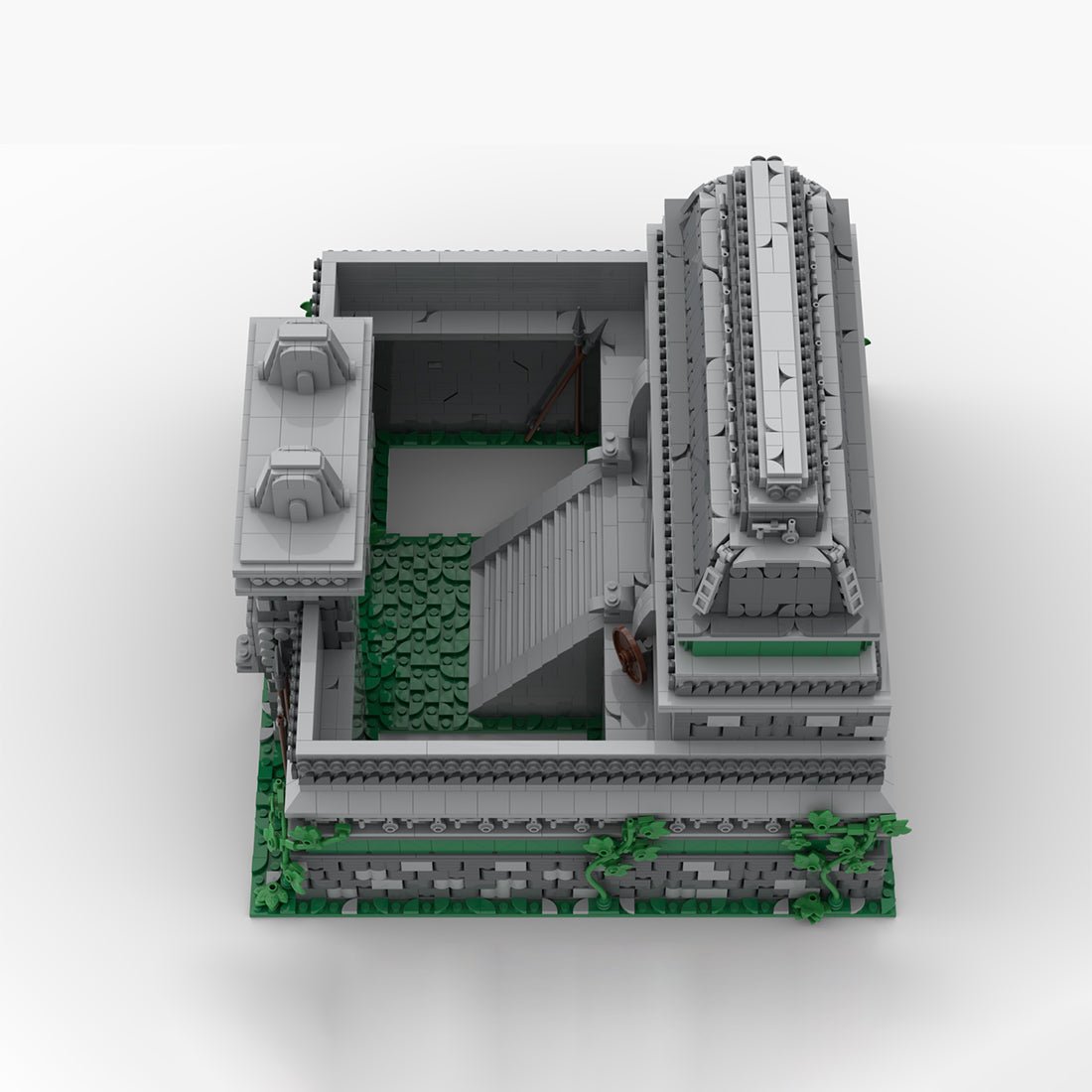 Entworfen und autorisiert von magurean.paul. Dies ist ein mittelalterliches Kasernenmodell mit Grau und Grün als Hauptfarben, das den Stil antiker Militärarchitektur wiederherstellt. Die mehrschichtige Steinstruktur ist versetzt, und die Türme, Bögen und Treppen sind detailreich gestaltet. Die grünen Ranken vermitteln ein Gefühl von Zeit, und kleine Accessoires wie Schilde und Waffen bereichern die Szene.