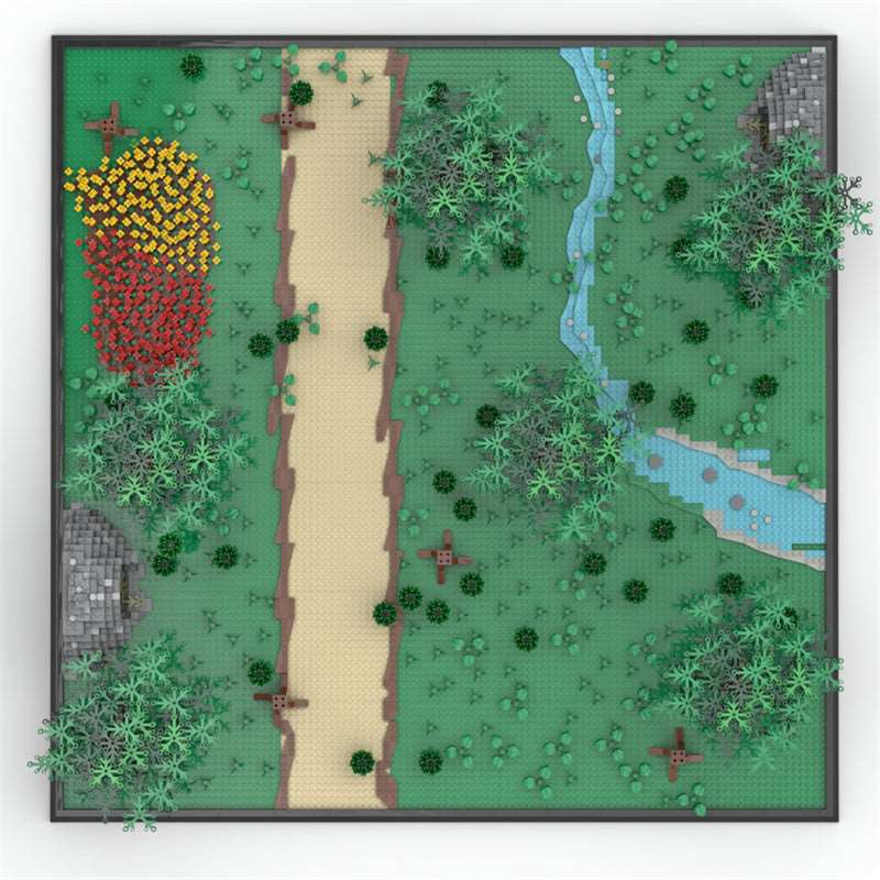 - Model kit: 2328 parts forest march scene kit. Model dimensions: 92.8 x 36.6 x 17.1 cm.