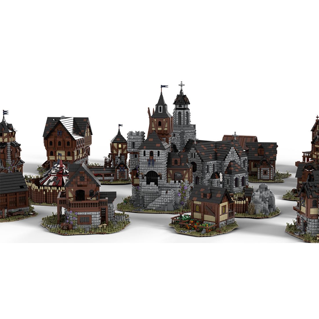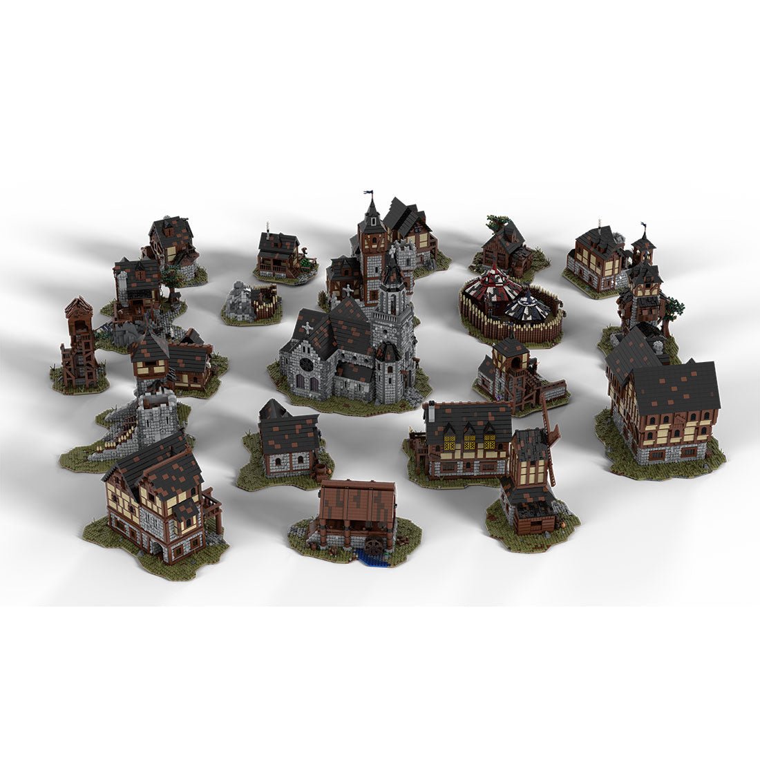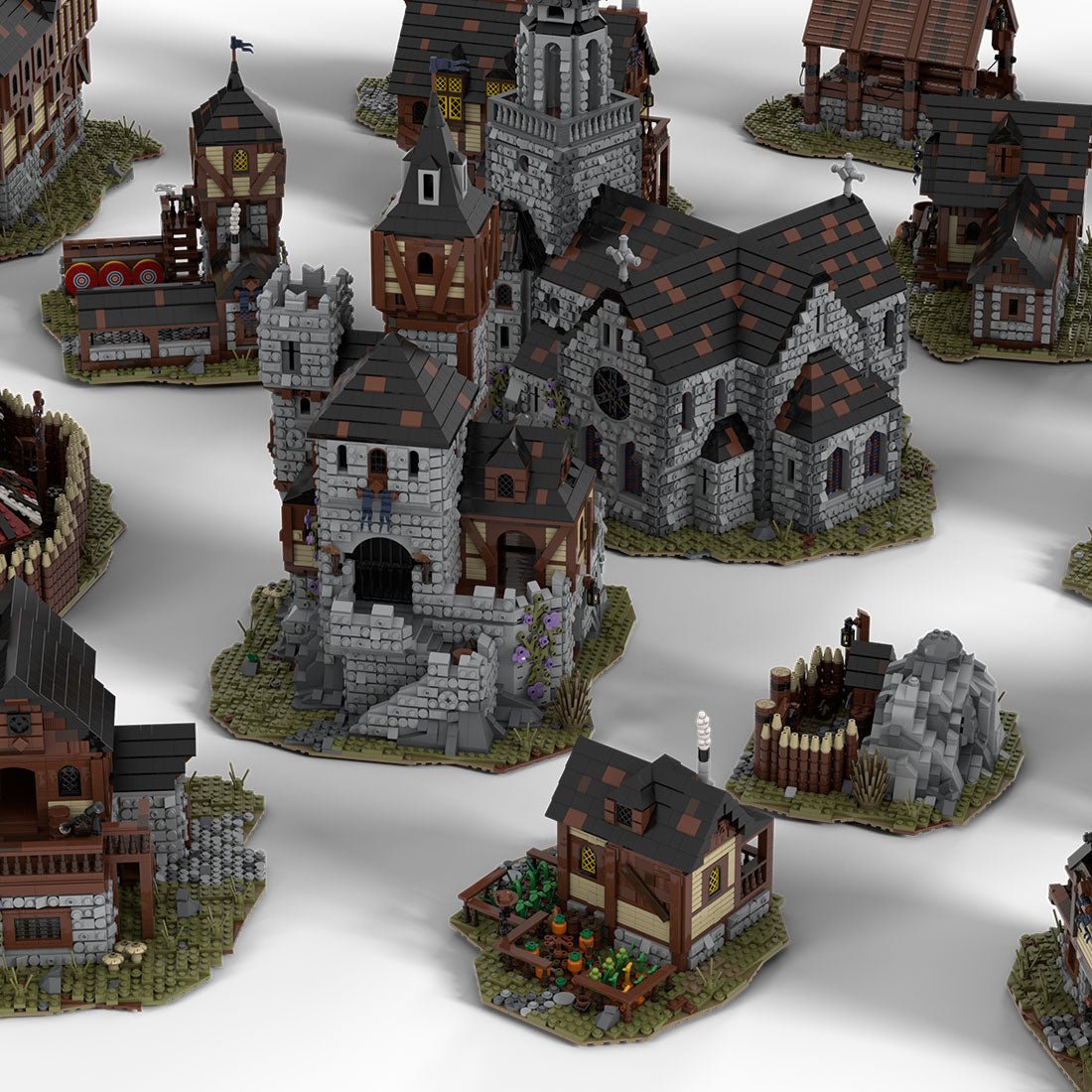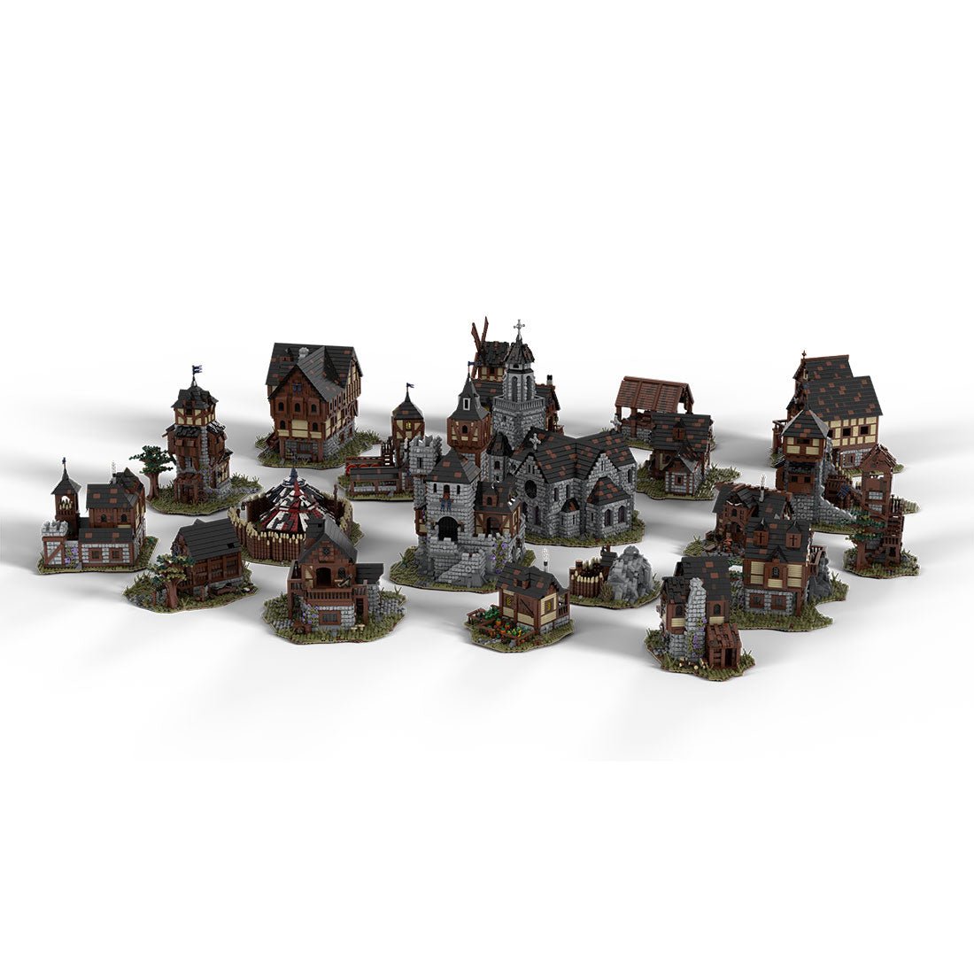 - Designed and authorized by MOCOPOLIS-02. Designed on the model of the medieval village, the set includes 21 huge buildings with more than 20 structures such as churches, houses, merchant houses and farms, mercenary barracks, blacksmith workshops, gold mines, archer shooting ranges, hunters' caves, barracks, etc.