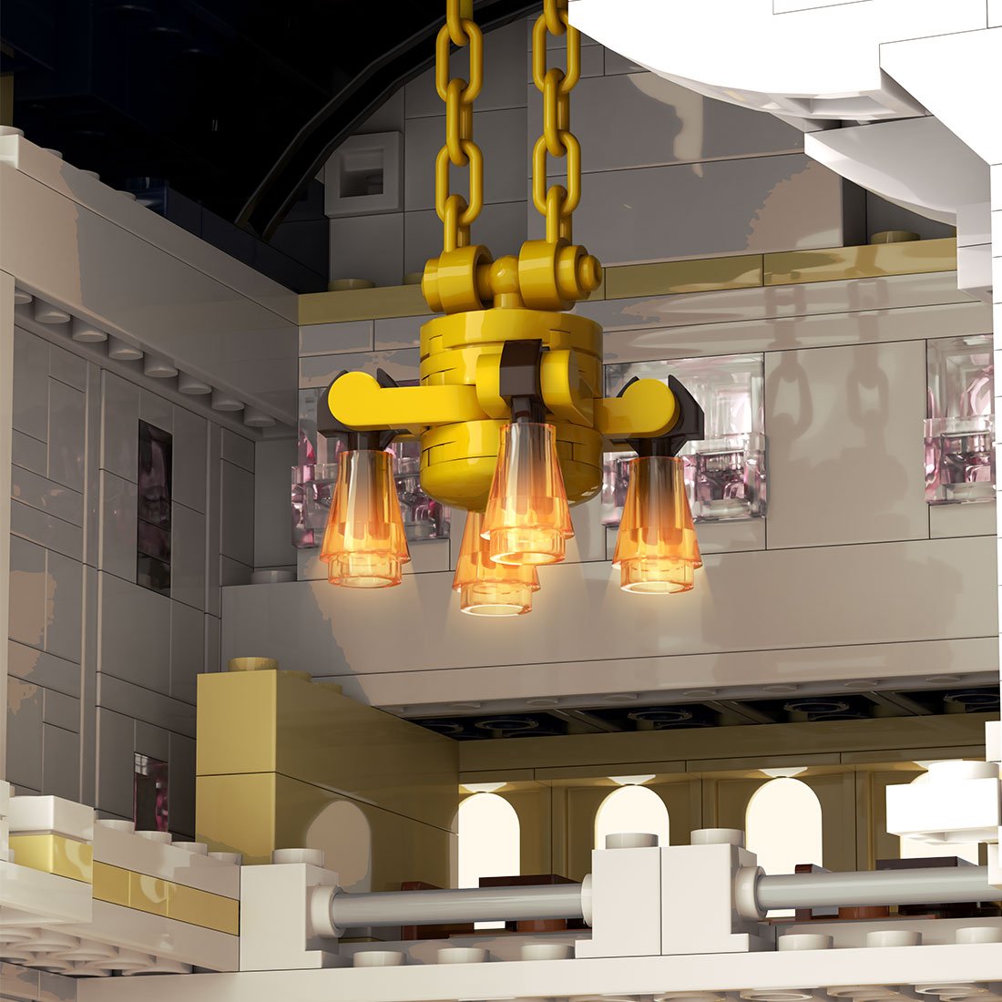 Designed and authorized by kaiyubicks, this 1:350 scale brick model is inspired by the real castle and consists of three modules that carefully recreate every detail. The dimensions are 119 cm in length, 46 cm in width and 64.8 cm in height.