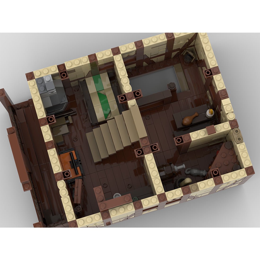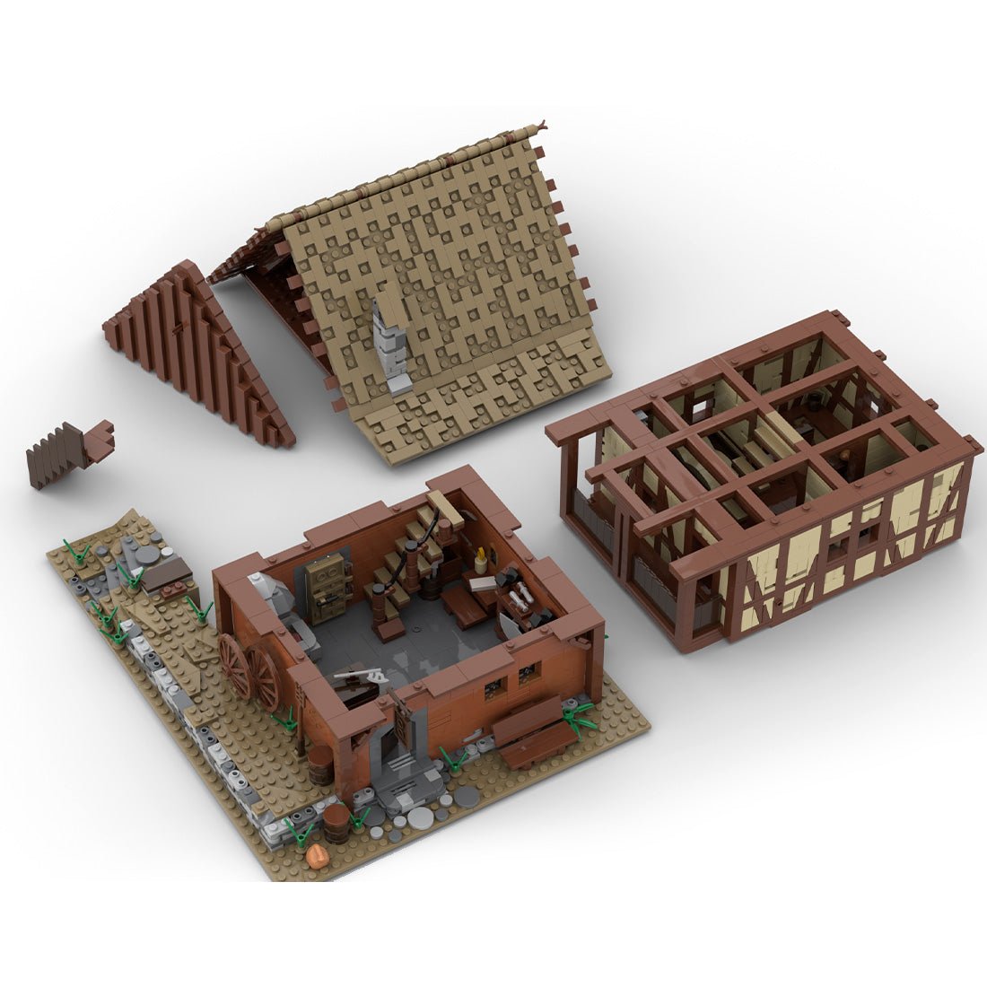- Designed and authorized by Taylorsbrick_DD, inspired by the intricate designs of medieval gun shops. This detailed set captures the essence of a historical era and offers an immersive and educational building experience. The ground floor features a shop counter, shelves, gun cases and signage. Climb the stairs to the second floor where you'll find a fully furnished room. The beams of the third floor support the entire roof, which is covered in cobwebs due to years of neglect. A chimney on the side of the roof adds an essential touch of authenticity.