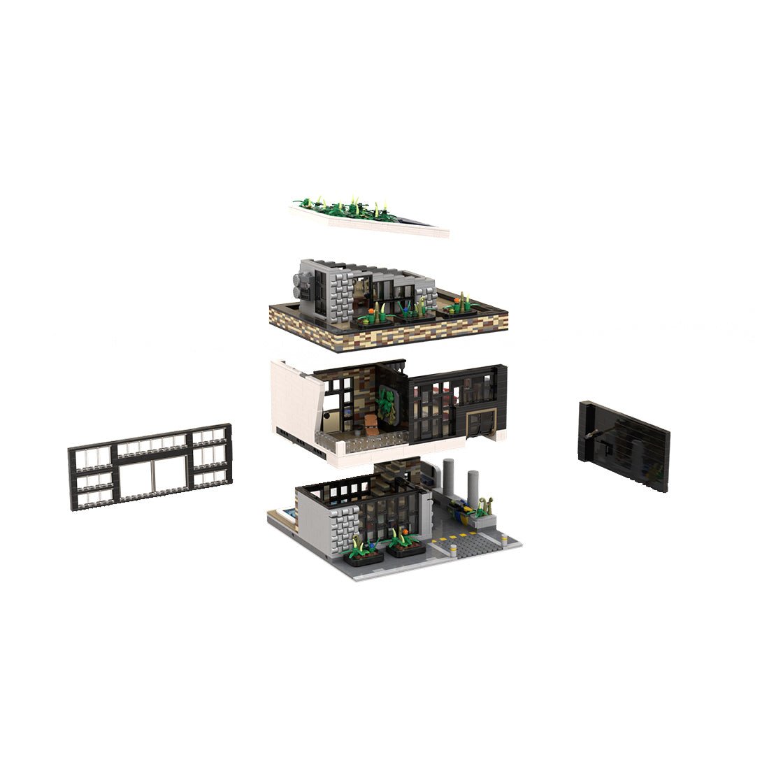 - This modular set with stable structure and detailed scene adopts the modern eco-design concept to perfectly represent the sustainable and green living environment and is the pursuit and interpretation of a better life in the future.