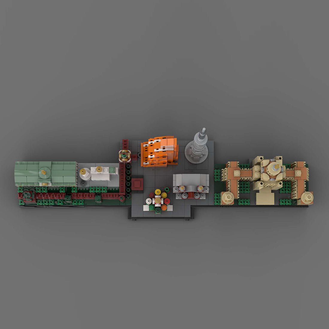 Dieses von electricboogalo entworfene und autorisierte Modell der Moskauer Skyline im Maßstab 1:2000 enthält berühmte Wahrzeichen wie den Roten Platz und den Fernsehturm. Es zeigt viele berühmte Gebäude und Szenen Moskaus in Miniaturgröße und ist somit ein perfektes Modell zur Darstellung der Moskauer Stadtlandschaft.
