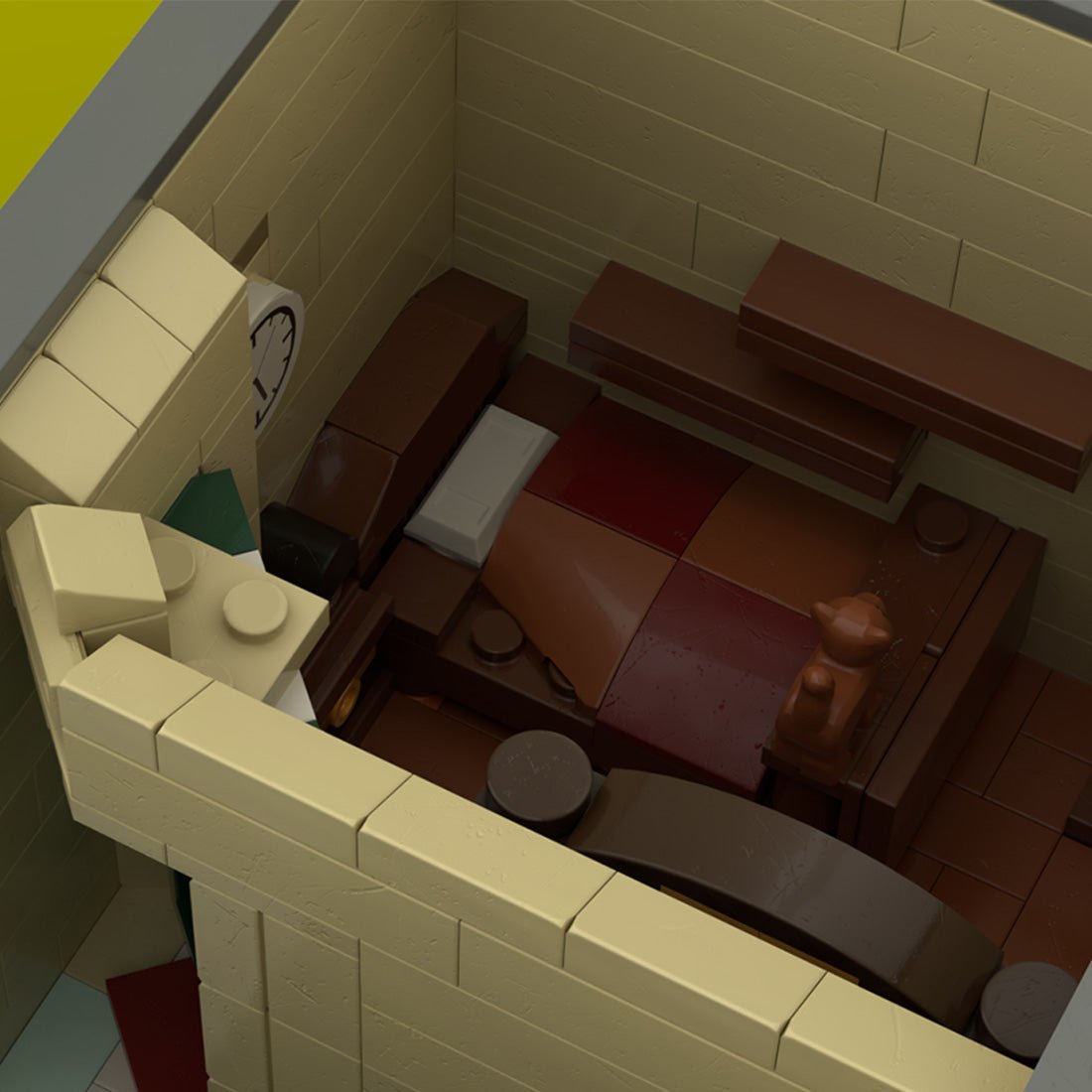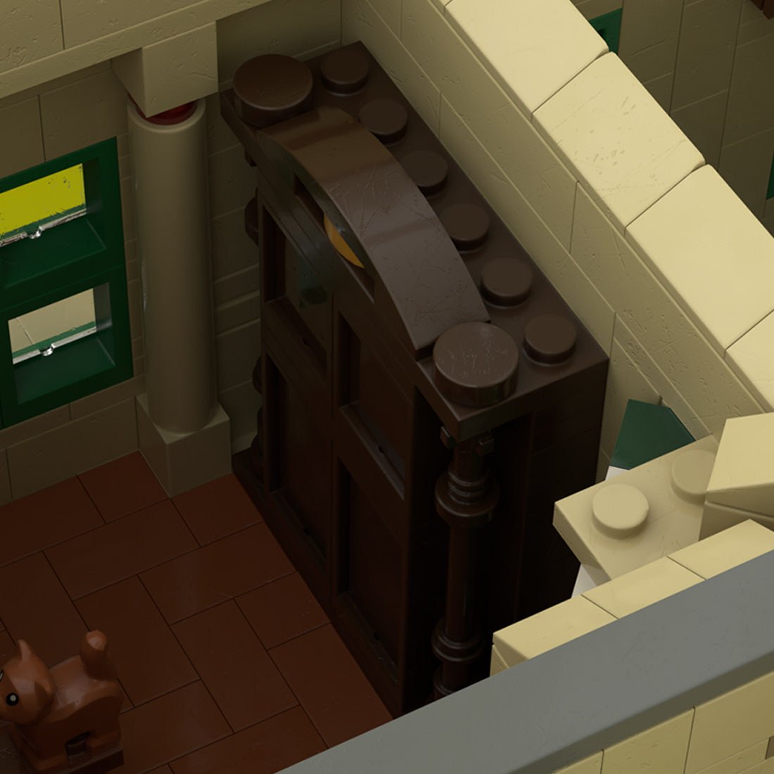 Dieses Gebäudemodell mit Straßenansicht basiert auf Hanois Altstadt und verbindet französischen Architekturstil mit lokalen vietnamesischen Elementen. Das zweistöckige Eckgebäude ist kompakt, aber reich an Fassadendetails wie Bogenfenstern, Ziergesimsen und gestaffelten Balkongeländern. Das Erdgeschoss ist als Eckcafé gestaltet, mit Schildern, Markise und Straßenaccessoires, die ein lebendiges Straßenbild erzeugen. Das Obergeschoss verfügt über grüne Lamellenfensterläden und einen kleinen Balkon, die den urbanen Charakter Südostasiens widerspiegeln. Die zurückhaltende und an Vintage erinnernde Farbgebung macht das Modell ideal für Straßenszenen und Stadt-MOC-Bauten und bietet sowohl visuelle Attraktivität als auch kulturelles Flair.