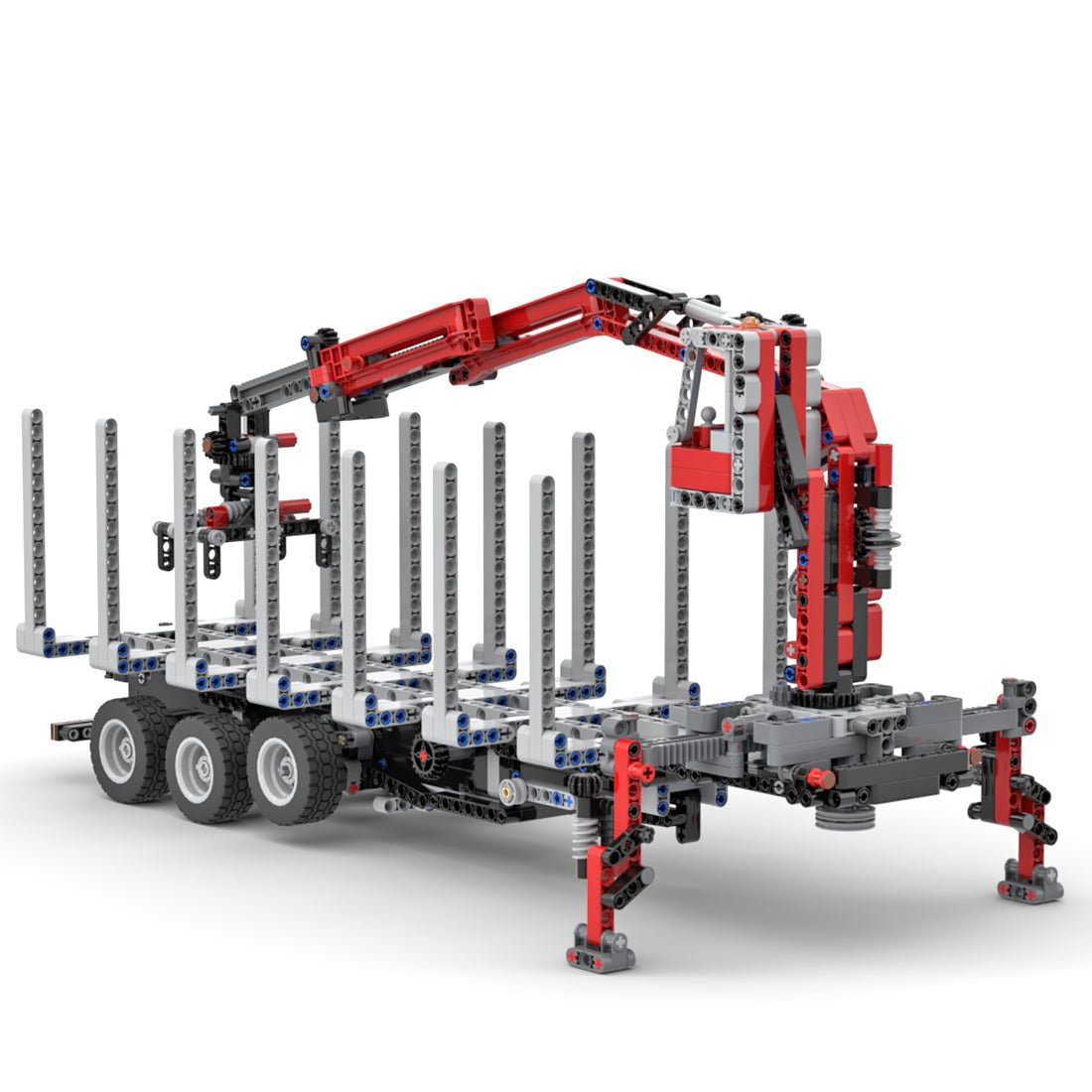 - This trailer with steering, a working V8 engine with rotating fan and the 5th wheel was designed and approved by OldOlney. A working steering wheel, a trailer stabilizer, a lifting axle, a rotating claw for clamping objects and opening doors are equipped for the tilting and elevating cabin. The detachable crane comes with synchronized hand-extended outriggers and 2 sections controlled separately by linear actuators. The boom can be extended in 2 sections and the crane needs to be rotated manually.