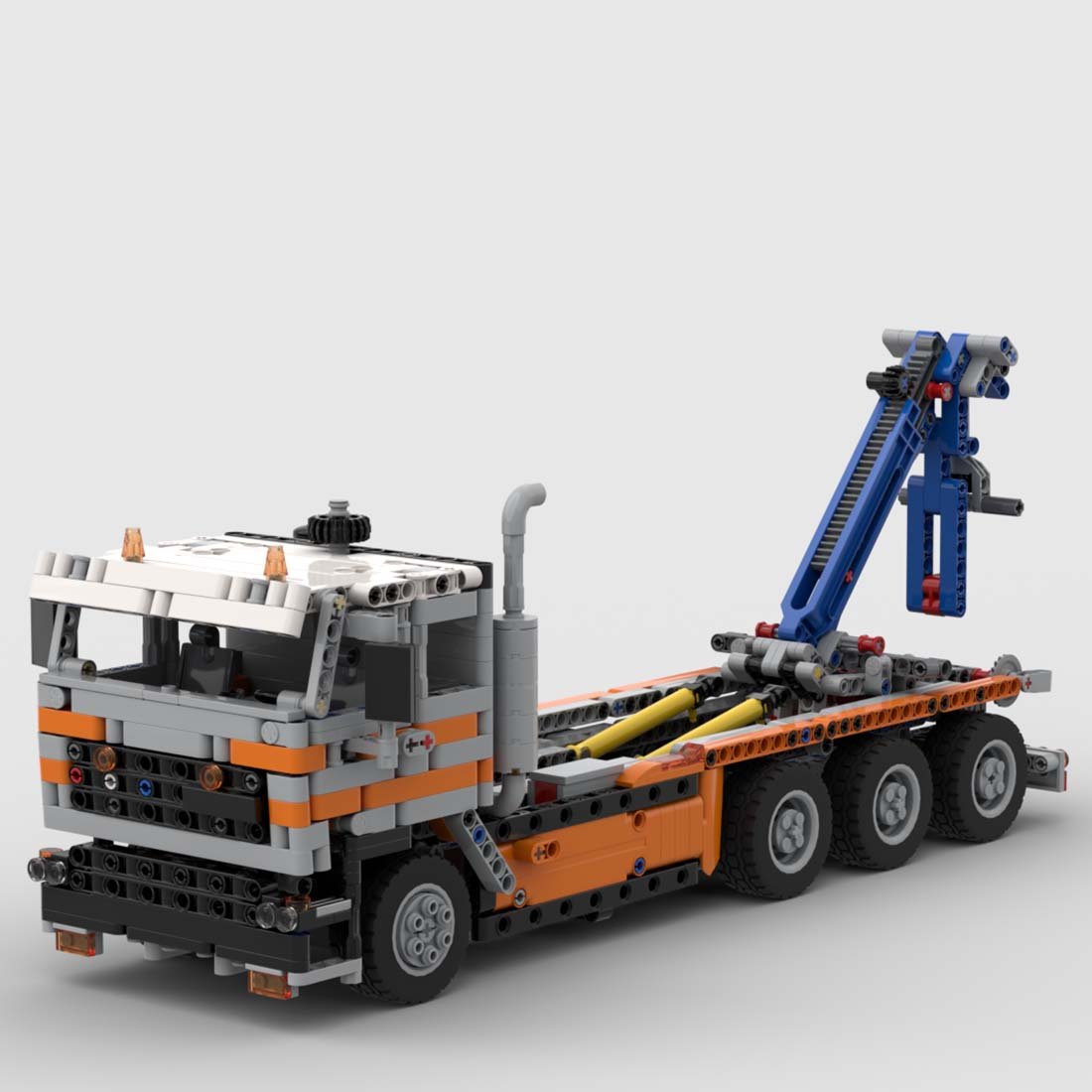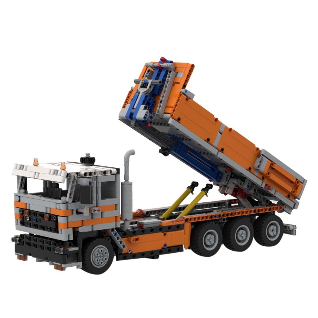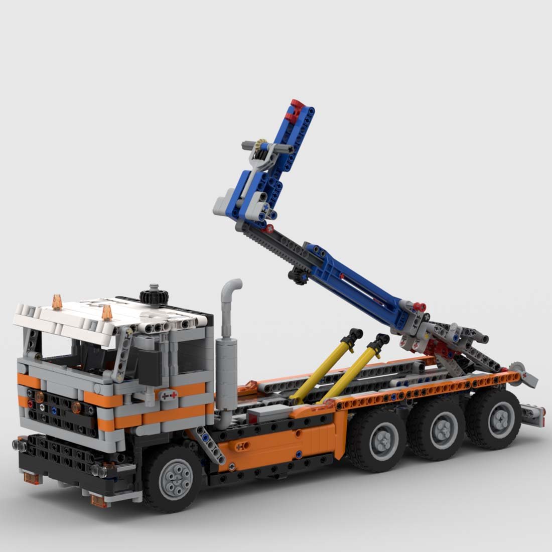 - This is an F2800 in a 4 axle hookloader configuration. The truck has a steerable front axle with HOG, a tilting cab and a 6-piston engine connected to the 2 rear axles. The doors can be opened and the steering knob is removable. Then the most interesting part: the roll-off tipper section. It is possible to switch from loading/unloading to tilting using a lever on the back. The pneumatic pistons are used to raise the extendable arm and it is equipped with another movable section actuated by a small linear actuator, which allows the container to be suspended. The container has rolling wheels, a hook point and fully opening doors. When on the truck, it must be secured with 2 axles ;Opening doors;Removable steering knob;Switching from loading/unloading to tilting;Liftable main arm section;Extendable main arm;Tiltable second part of the arm Container features:Hook point;Openable door that Can be fully opened for tilting;Locking the door;Rolling wheels.