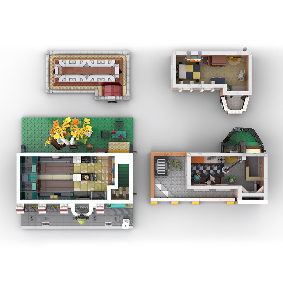 - This is a bowling alley model designed and authorized by PL MOCs. The building has three floors, with a small bowling alley on the first floor with two bowling lanes, small benches and racks for shoes or bowling balls, and a staircase to the second floor, accessible via a separate entrance.