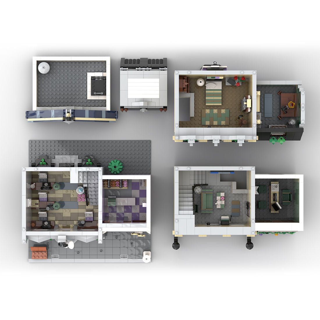 - This is a street building call center model designed and authorized by PL MOCs. This modular building is divided into two buildings next to each other. On the ground floor is the call center with four desks with various phones. Under the stairs there are toilets and next to the stairs there are water and donuts. Next door there is a small cake shop where customers can also buy newspapers. On the second floor there is a staff lounge area with sofas, a coffee machine and small tables and another work area for call recording. There is also the manager's office with a desk and chair for the manager's use only. On the third floor there are beds in case the manager doesn't want to go home. There is also a secret room where he keeps and photographs his treasures. The roof is accessible via a hidden ladder.