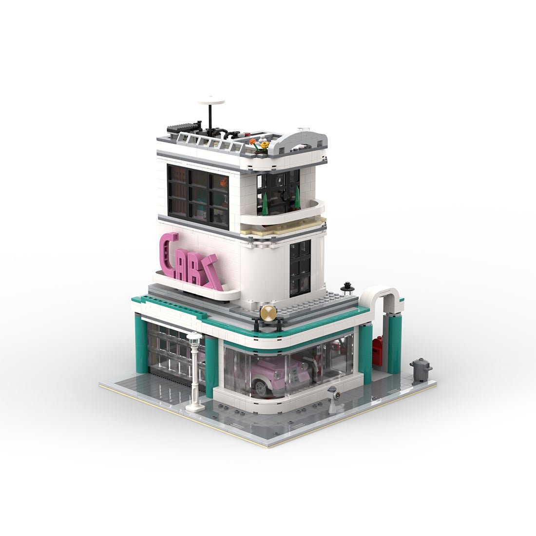 - This is a car workshop model designed and authorized by PL MOCs. The building consists of three floors, the first floor is a car dealership. It consists of a large showroom with modified cars on display and small offices for the dealers with contract typewriters. The garage door opens to allow the cars easy access to the showroom.